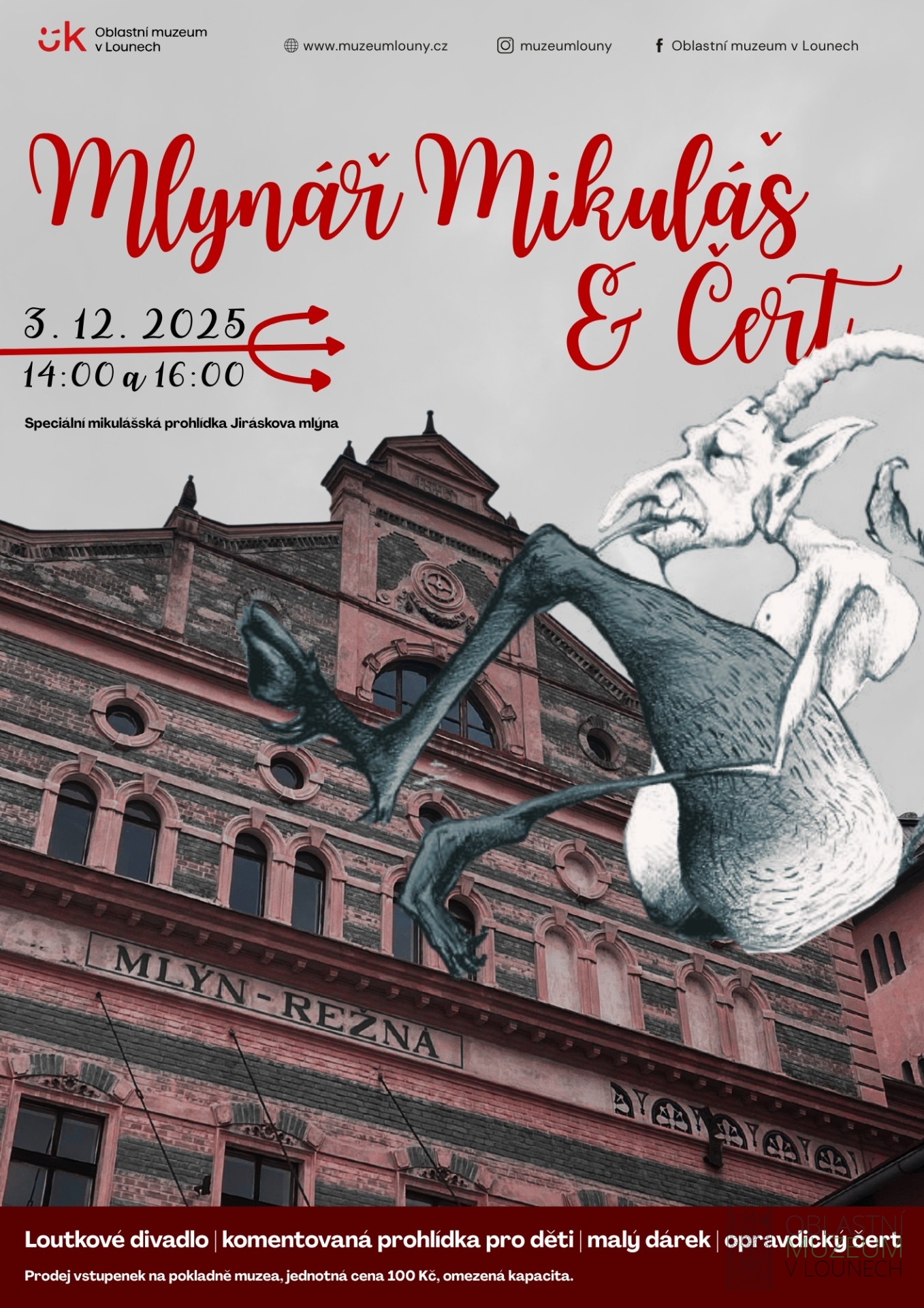 Už 3. prosince ožije Jiráskův mlýn pohádkou o mlýnáři a čertovi. Čeká vás loutkové divadlo, komentovaná prohlídka pro děti, malý dárek a také opravdický čert. Vstupenky jsou již v prodeji na pokladně muzea – počet míst je omezený.