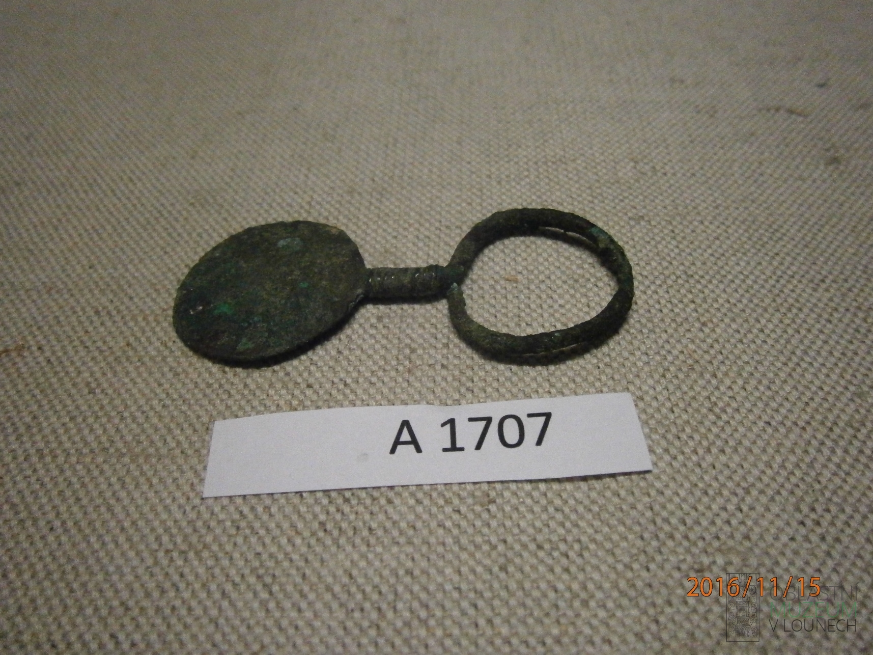 Archeologická sbírka se pyšní bohatým souborem šperků, keramických nádob, zbraní, nářadí i nástrojů a dalších dokladů lidské činnosti. Smutného osudu se dočkala proslavená laténská maskovitá spona z Panenského Týnce: „Nejvzácnější kus musejní, půjčen byl Státnímu archeologickému ústavu, jenž dal po několikerých urgencích zhotoviti kopii a spona mu trvale propůjčena.“
