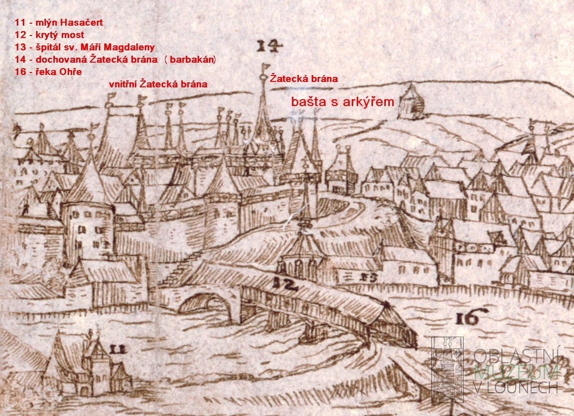 Po třicetileté válce poničené městské opevnění už nezískalo zpět svůj někdejší vzhled. Opravovaly se sice provalené zdi, střechy bran a některých věží, ale fortifikační systém již nebyl dále rozvíjen. Přesto ještě roku 1813, když se kolem Ohře budovala obranná linie chránící Prahu před Napoleonem, byly naposledy lounské hradby upravovány pro vojenské účely. Už v 15. a 16. století se některé bašty využívaly i v době míru. Nemusely být do města otevřené, nýbrž uzavřené s kamny a komínem. Sloužily např. jako ubytování ponocným či trubačům, jako vězení nebo skladiště a sušárna. Ale roku 1843 byla bašta pod Žateckou bránou otevřená, prázdná, bez zastřešení, jako většina ostatních. Oproti tomu v sousední spodnější baště byl dům čp. 27. Někdy v polovině 19. století byla i horní bašta zastřešena a byl z ní vytvořen obytný dům. Vznikla rovná zeď bašty na straně do města, při níž bývala pavlač či balkón se schodištěm.
