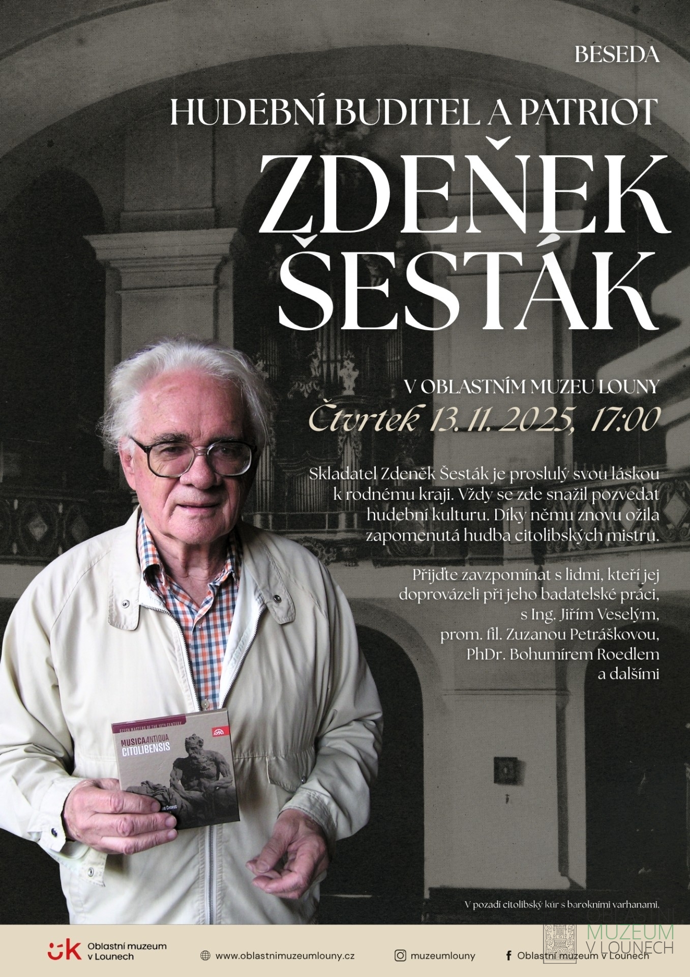 Skladatel Zdeněk Šesták je proslulý svou láskou k rodnému kraji. Vždy se zde snažil pozvedat hudební kulturu. Díky němu znovu ožila zapomenutá hudba citolibských mistrů. Přijďte zavzpomínat s lidmi, kteří jej doprovázeli při jeho badatelské práci, s Ing. Jiřím Veselým, prom. fil. Zuzanou Petráškovou, PhDr. Bohumírem Roedlem a dalšími.