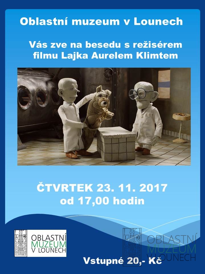 V letošním roce bylo dokončeno natáčení celovečerního loutkového animovaného sci-fi filmu Lajka, který bude promítán 22. listopadu od 17,30 hodin v lounském kině Svět. O natáčení tohoto filmu bude v muzeu besedovat 23. listopadu od 17,00 hodin režisér Aurel Klimt.
