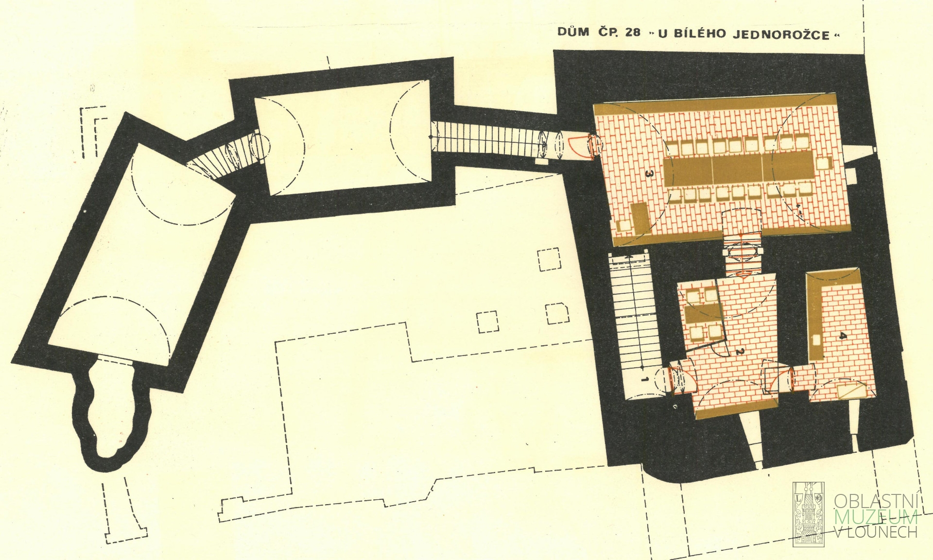 Již v roce 1972 patřil dům čp. 28 muzeu, ale dlouho zde ještě bydleli nájemníci. Roku 1985 byla dokončena rekonstrukce budovy, do níž se z protějšího domu přesunula administrativa muzea. Tehdy byla na dvoře zbourána nepůvodní přístavba – východní křídlo, čímž se v přízemí i v patře jižního a západního traktu v plné míře odhalily renesanční arkády, pro Louny typický prvek. Také sklepní sál byl upraven pro přednáškové a jiné veřejné účely. Sklep má pět různě velkých místností v rozličných úrovních, nejhlubší je přes 10 m pod povrchem dvora. Rozlehlost sklepů souvisí s pivovarskou a sladovnickou minulostí domu.