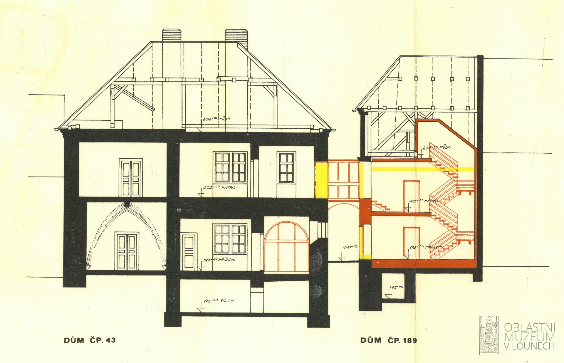 Původní gotický dům byl na místě čp. 189 a patřila k němu ještě chodba se vstupem z Pivovarské ul. sousedního domu čp. 42, jehož větší část sloužila jako dvůr. Asi v 16. stol. došlo k rozšíření stavby po celé šířce parcely. Po rozdělení domu připadl hlavní vchod z ulice s původním číslem popisným k oné pozdější přístavbě. Do přízemí domu čp. 189 byl proražen vstup z postranní uličky a do patra se vcházelo po dřevěné pavlači z prostoru za kostelem. Do sklepa, kde byla studna, byl proražen nový vchod ze dvora.