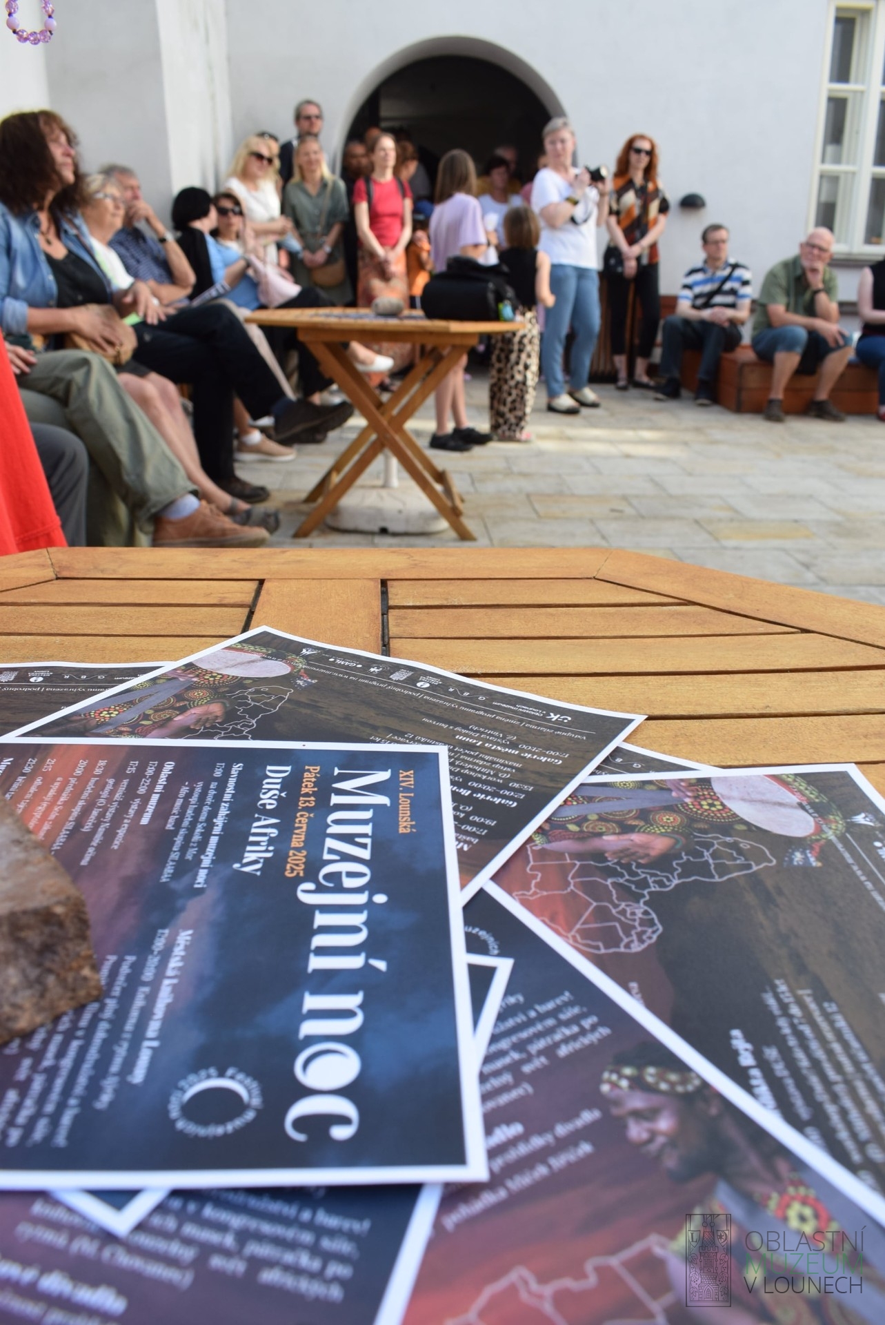 Večer odstartovala africká hudební skupina Silaabaa, jejíž rytmy rozezněly nádvoří muzea. Poté byla slavnostně zahájena výstava Namibie očima geologů, která návštěvníky přenese do fascinující krajiny Namibie pohledem českých geologů. Vystoupily také tanečnice z klubu TK Luna a velký zájem vzbudila přednáška egyptologa Miroslava Bárty, během níž byla odhalena i záhadná soška vešebta z muzejních sbírek. Zážitkem byla i noční prohlídka expozice Zkamenělého lesa v baště u minigolfu, kde proběhla komentovaná prohlídka s geologem Ondřejem Janečkem.