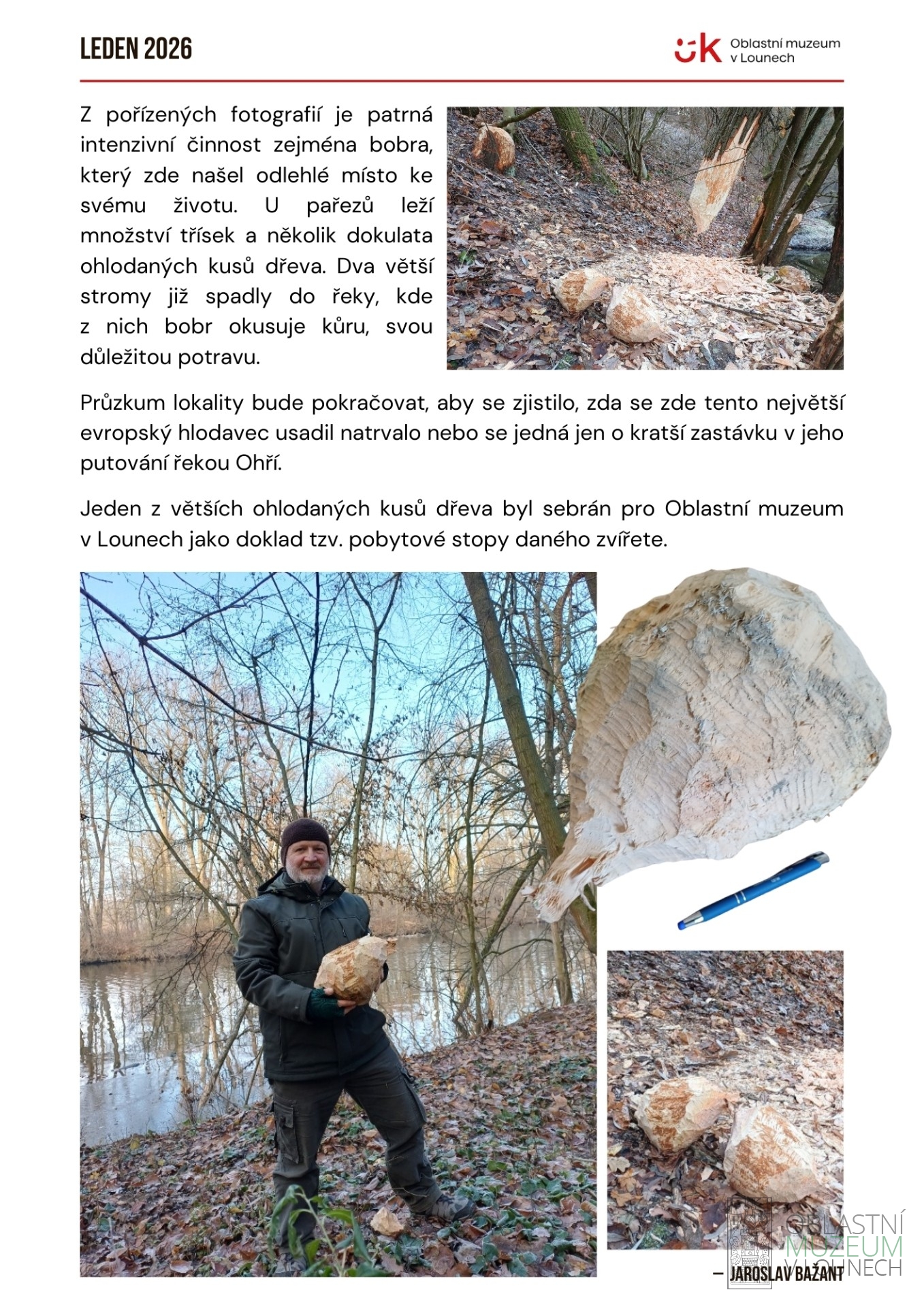 z větších ohlodaných kusů dřeva byl sebrán pro Oblastní muzeum