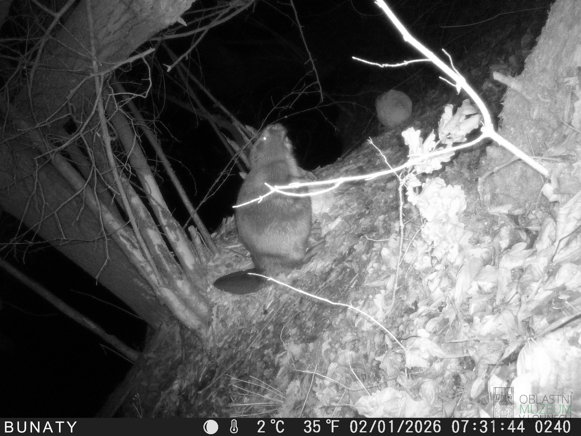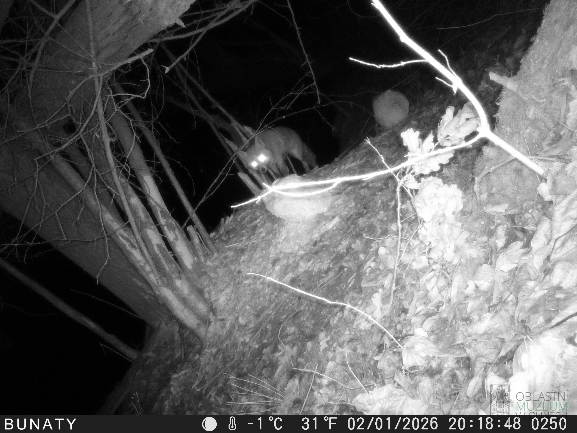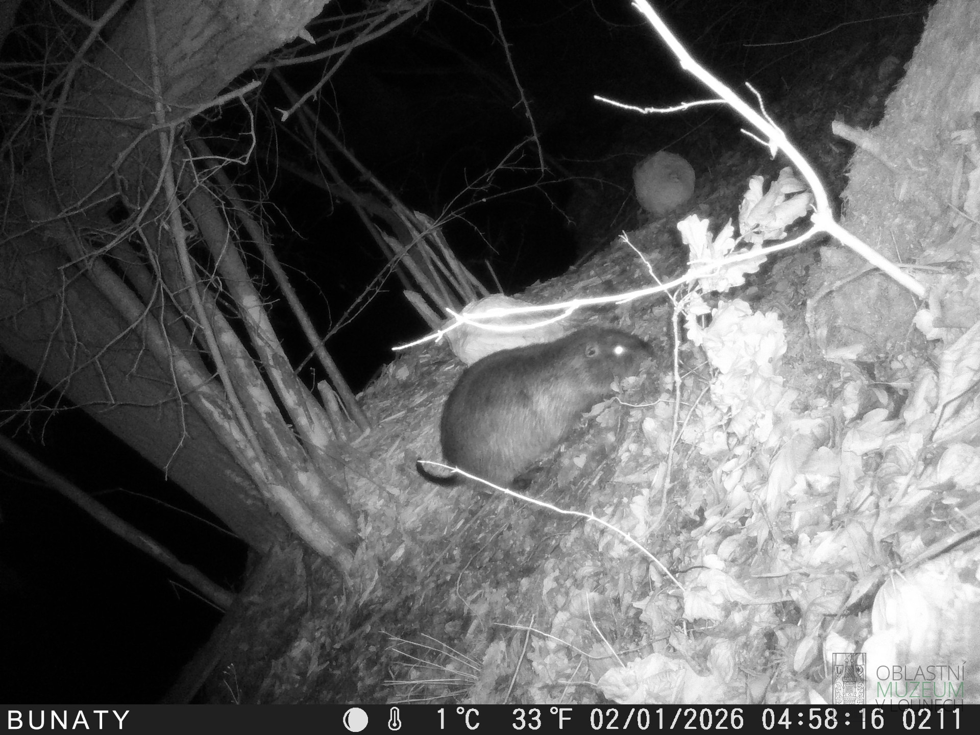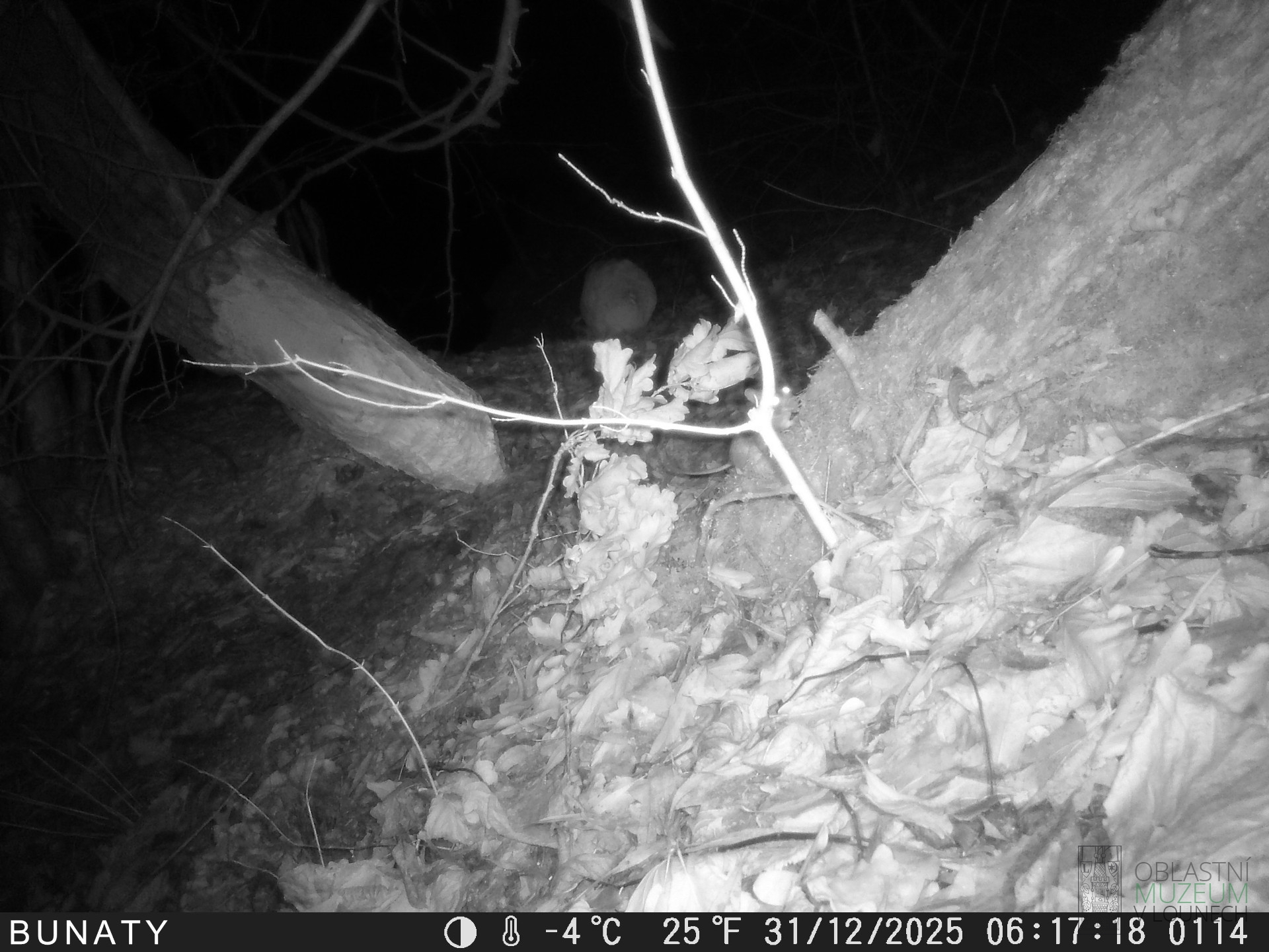 Na místě byla nainstalována fotopast, která byla v provozu od 29.12.2025 do 2.1.2026. V nočních hodinách, tj. od setmění do rozbřesku zde byly zaznamenány čtyři druhy savců. Jednalo se o myšici lesní nebo křovinnou, nutrii říční, bobra evropského a lišku obecnou.