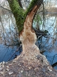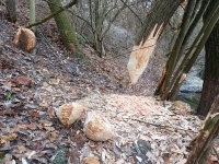 Z pořízených fotografií je patrná intenzivní činnost zejména bobra, který zde našel odlehlé místo ke svému životu. U pařezů leží množství třísek a několik dokulata ohlodaných kusů dřeva. Dva větší stromy již spadly do řeky, kde z nich bobr okusuje kůru, svou důležitou potravu.