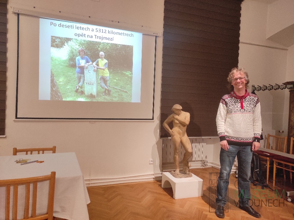 Ve středu 20. dubna proběhla ve Vlastivědném muzeu ve Slaném přednáška kurátora lounského muzea historika Martina Vostřela s názvem Pěšky napříč republikou 2 – Od východu na západ. Mapovala putování Aleše Nováka a Martina Vostřela z nejvýchodnějšího bodu republiky od česko-slovensko-polského Trojmezí na Hrčavě přes Pováží, jižní Moravu, Vysočinu a jižní Čechy zpět na začátek – na Trojmezí Čech, Bavorska a Saska. Návštěvníci shlédli přes 100 snímků. Na tuto přednášku se můžete těšit v červnu i v našem lounském muzeu.