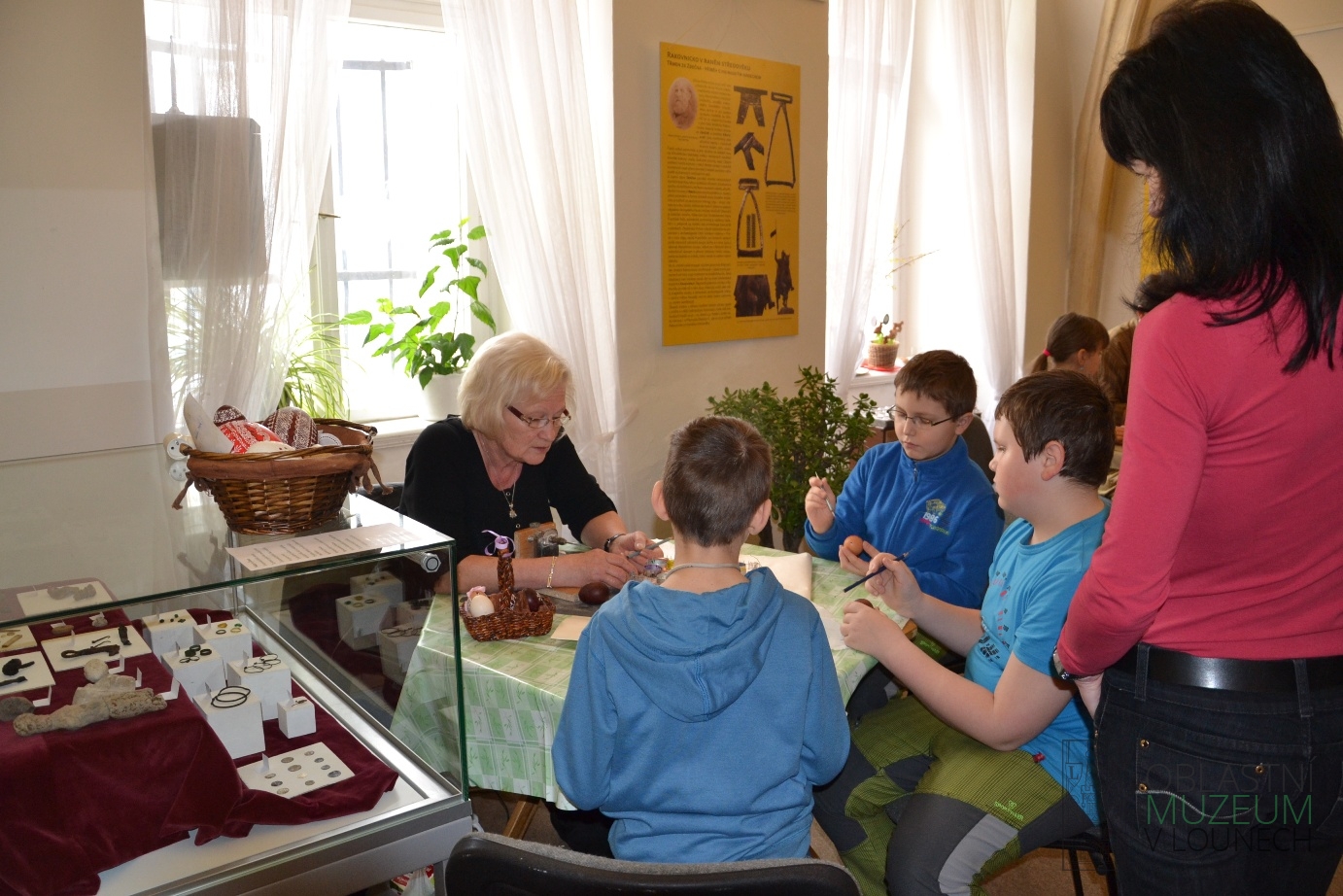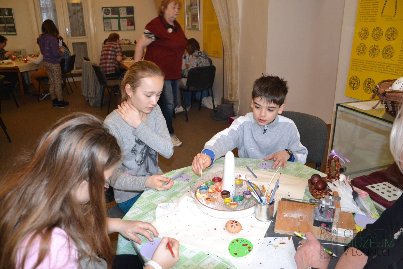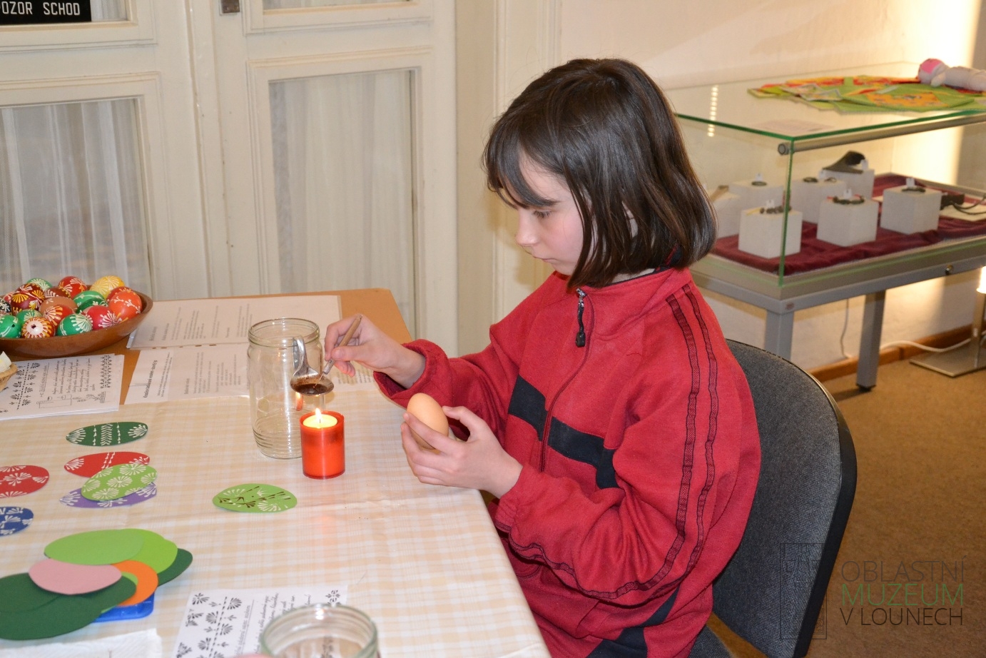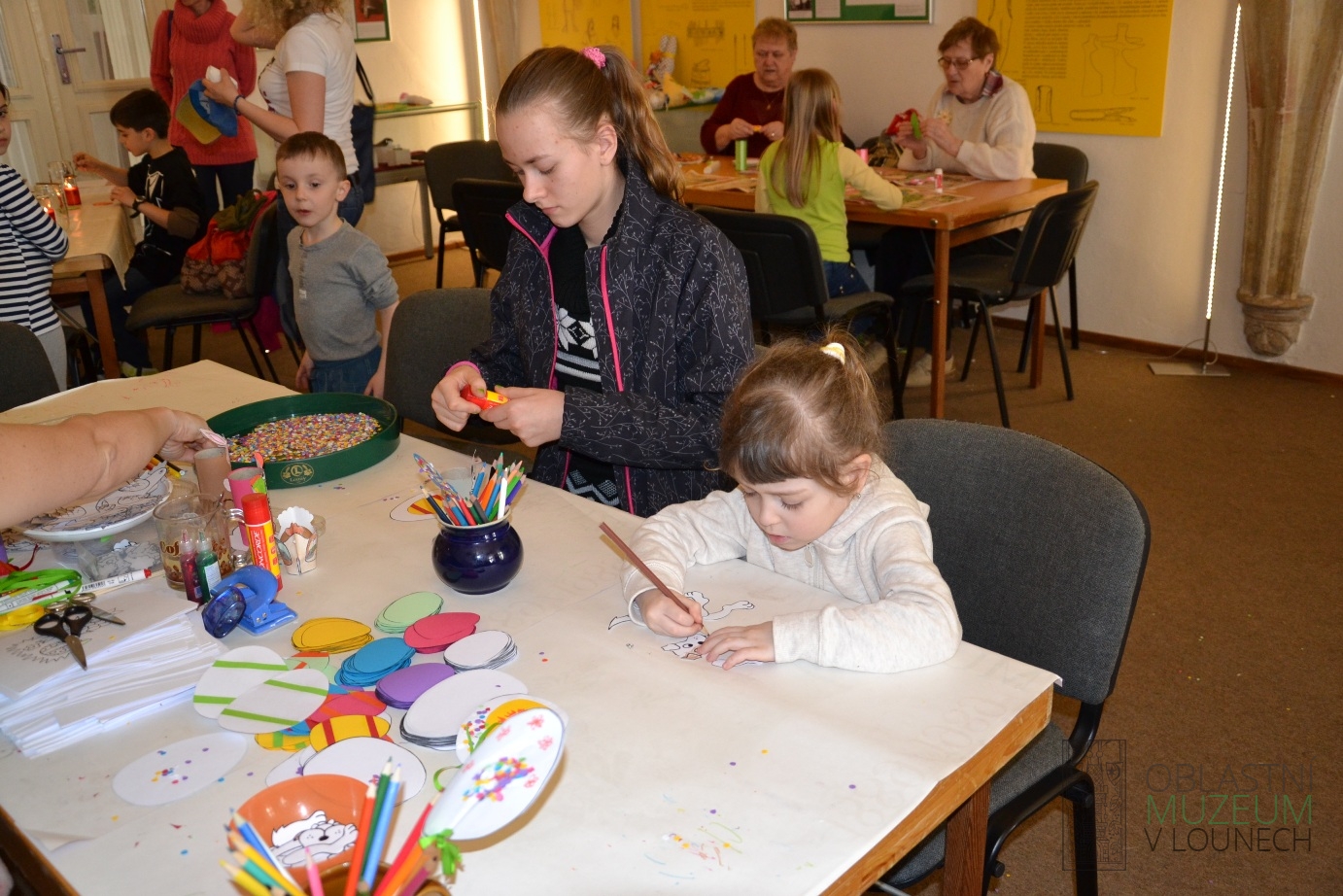 Ve středu a ve čtvrtek 25. a 26. března proběhly v Oblastním muzeu v Lounech tradiční velikonoční dílny pro malé i velké návštěvníky. Jako každým rokem bylo možné vyzkoušet některé z klasických zdobných technik kraslic, ale mohli jste se naučit vyrobit i nové jarní dekorace a výzdoby. Inspirací snad byly i kraslice z našich sbírek, které si můžete v muzeu prohlédnout až do 10. dubna. Dopoledne patřila tradičně školním a školkovým dětem, odpoledne pak spíše dětem s rodiči a prarodiči. Celkem přišlo tvořit 330 návštěvníků, z čehož máme velikou radost. Chtěla bych poděkovat všem návštěvníkům, ale také dámám ze Spolku paní, dam a dívek, které nám s tvořením ochotně pomáhaly a samozřejmě všem kolegyním a kolegům, kteří pro Vás akci připravovali. Přeji všem krásné jaro a veselé Velikonoce.