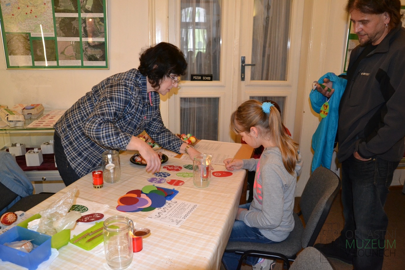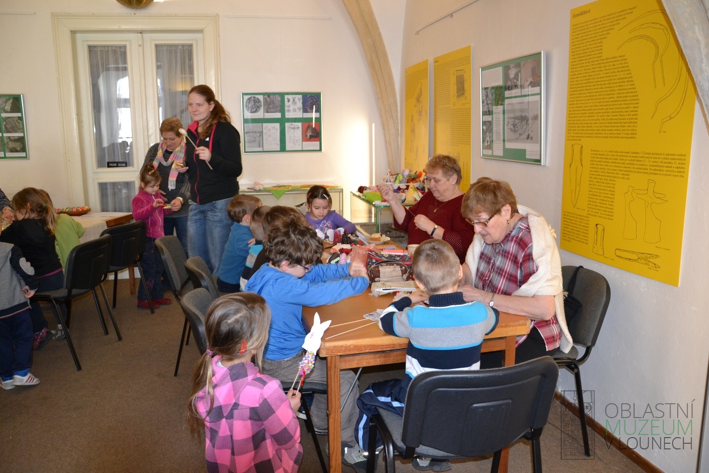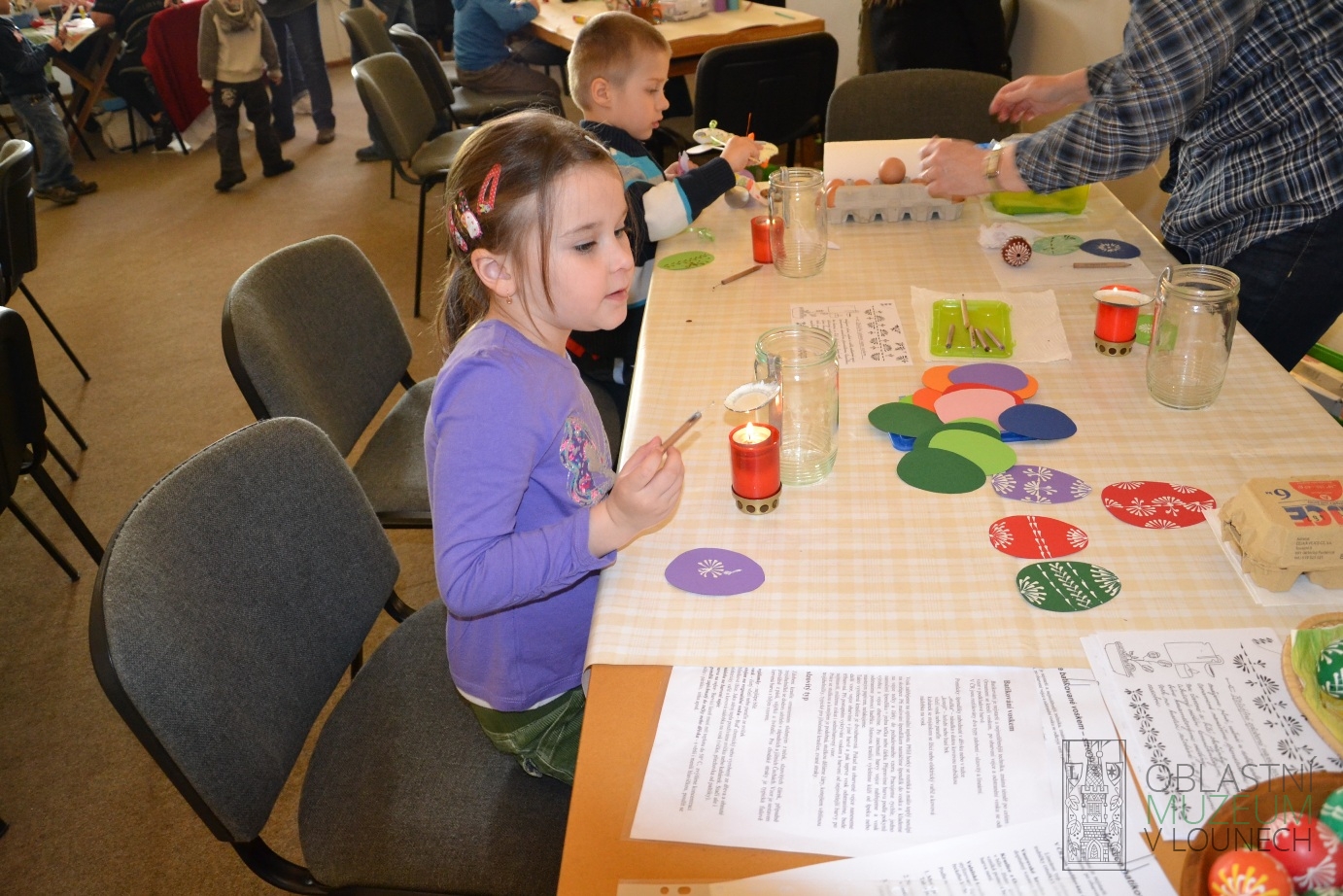 Ve středu a ve čtvrtek 25. a 26. března proběhly v Oblastním muzeu v Lounech tradiční velikonoční dílny pro malé i velké návštěvníky. Jako každým rokem bylo možné vyzkoušet některé z klasických zdobných technik kraslic, ale mohli jste se naučit vyrobit i nové jarní dekorace a výzdoby. Inspirací snad byly i kraslice z našich sbírek, které si můžete v muzeu prohlédnout až do 10. dubna. Dopoledne patřila tradičně školním a školkovým dětem, odpoledne pak spíše dětem s rodiči a prarodiči. Celkem přišlo tvořit 330 návštěvníků, z čehož máme velikou radost. Chtěla bych poděkovat všem návštěvníkům, ale také dámám ze Spolku paní, dam a dívek, které nám s tvořením ochotně pomáhaly a samozřejmě všem kolegyním a kolegům, kteří pro Vás akci připravovali. Přeji všem krásné jaro a veselé Velikonoce.
