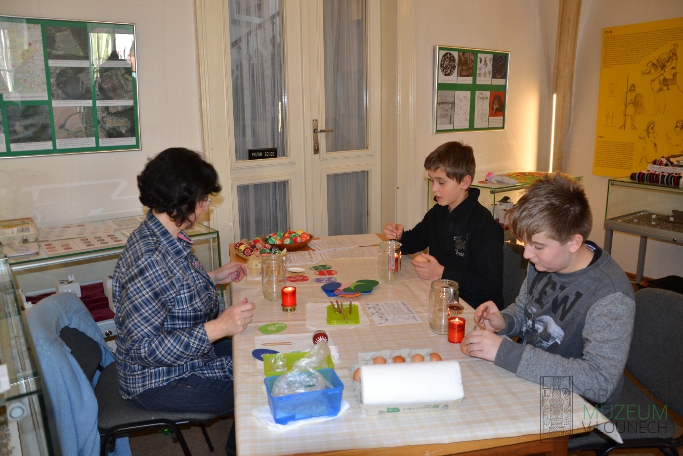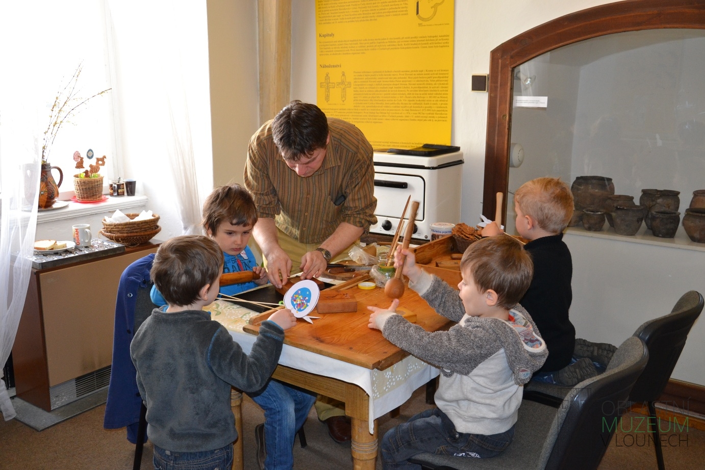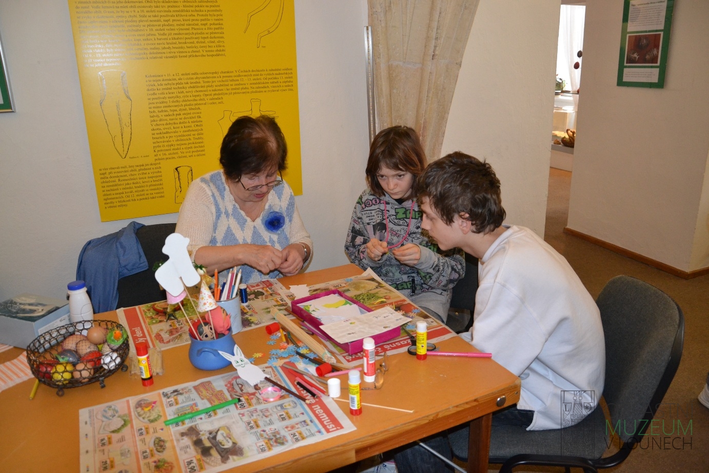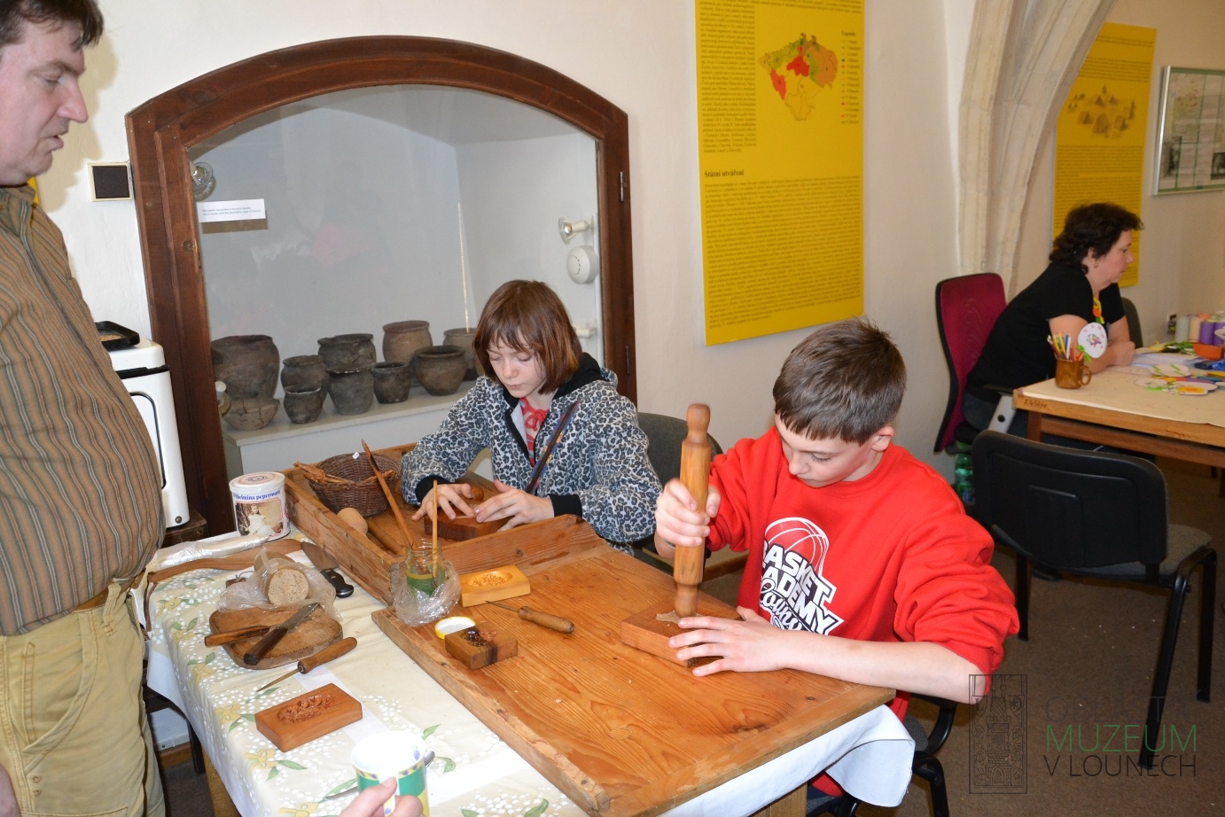 Ve středu a ve čtvrtek 25. a 26. března proběhly v Oblastním muzeu v Lounech tradiční velikonoční dílny pro malé i velké návštěvníky. Jako každým rokem bylo možné vyzkoušet některé z klasických zdobných technik kraslic, ale mohli jste se naučit vyrobit i nové jarní dekorace a výzdoby. Inspirací snad byly i kraslice z našich sbírek, které si můžete v muzeu prohlédnout až do 10. dubna. Dopoledne patřila tradičně školním a školkovým dětem, odpoledne pak spíše dětem s rodiči a prarodiči. Celkem přišlo tvořit 330 návštěvníků, z čehož máme velikou radost. Chtěla bych poděkovat všem návštěvníkům, ale také dámám ze Spolku paní, dam a dívek, které nám s tvořením ochotně pomáhaly a samozřejmě všem kolegyním a kolegům, kteří pro Vás akci připravovali. Přeji všem krásné jaro a veselé Velikonoce.