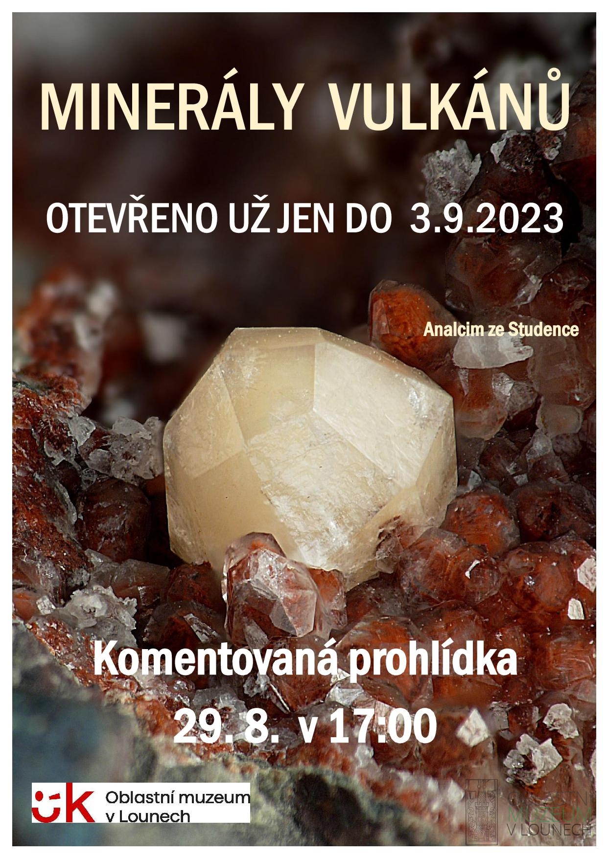 Výstava Minerálů vulkánů, aneb Kameny zrozené zemským ohněm, potrvá už jen do neděle 3. září 2023. V úterý 29.8. proběhne komentovaná prohlídka s výkladem autora expozice Oldřicha Janečka.