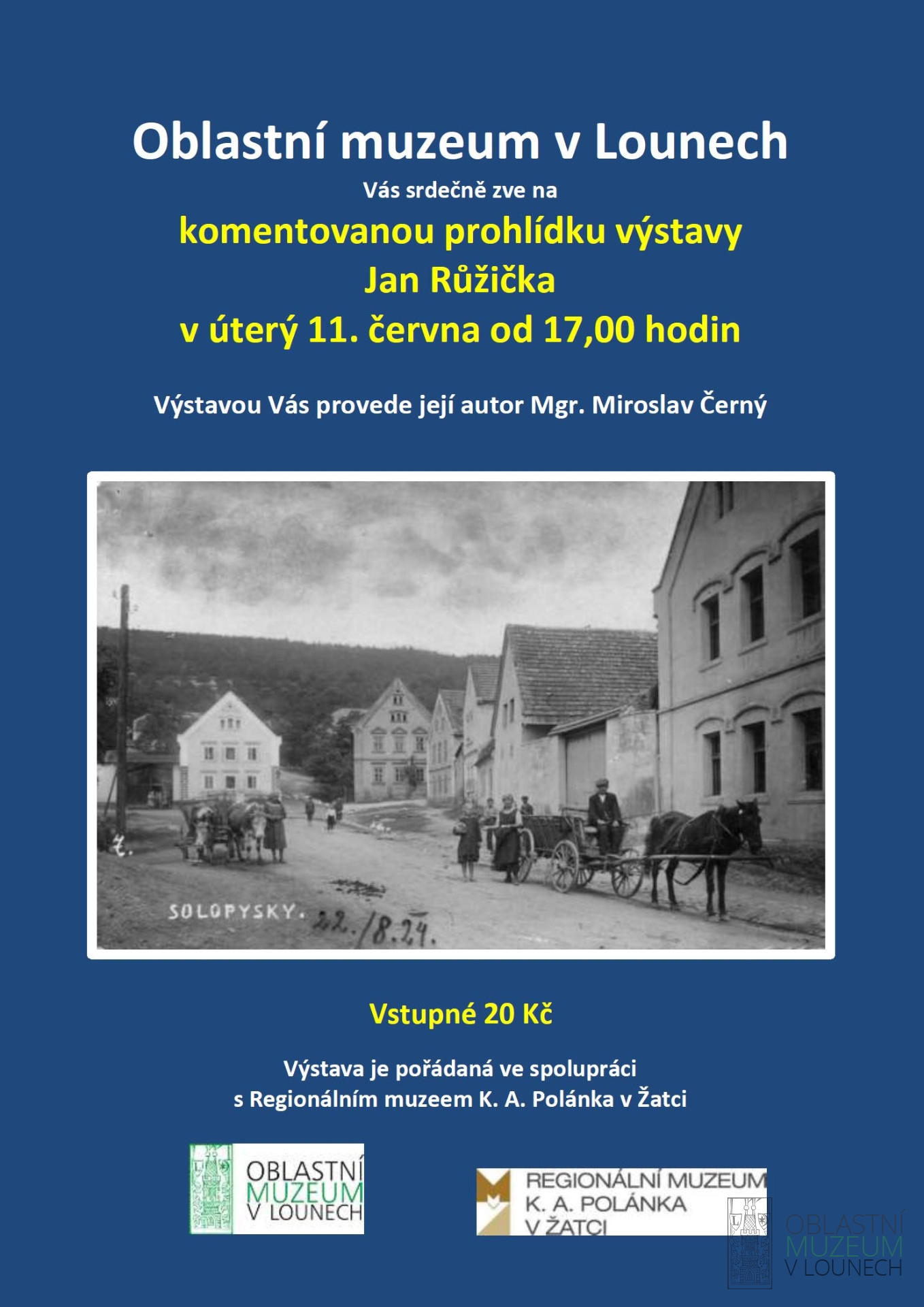 V úterý 11. června proběhne od 17,00 hodin komentovaná prohlídka výstavy Jan Růžička – Snímky krajiny z let 1900 – 1937 s jejím autorem Mgr. Miroslavem Černým. Vstupné 20 Kč.