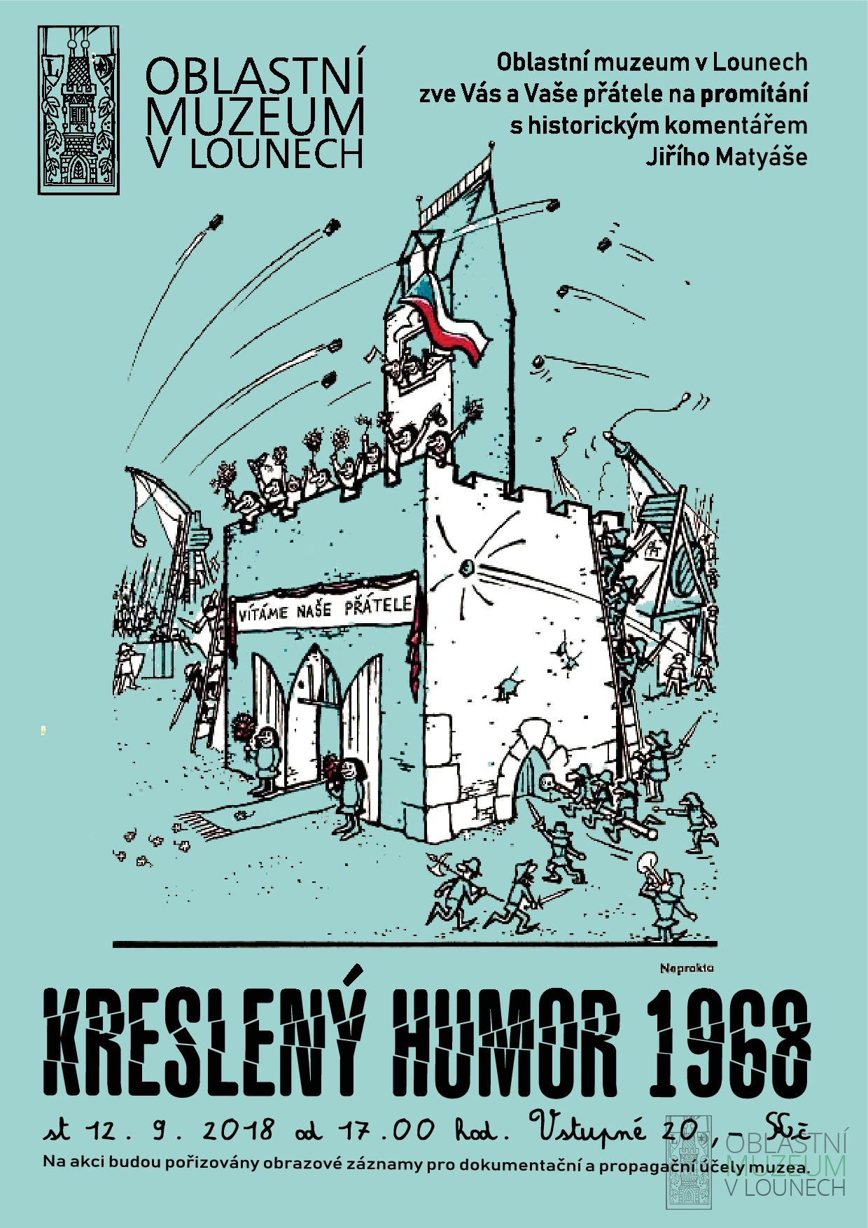 Zveme Vás na doprovodnou akci k výstavě NEŽ PŘIJELY TANKY... Promítneme Vám to nejlepší z kresleného humoru roku 1968 a na pozadí karikatur vysvětlíme vývoj, ale i naděje a zklamání tohoto přelomového roku. Kreslený humor představí a doplní historickým komentářem autor výstavy Jiří Matyáš. Vstupné 20,- Kč.