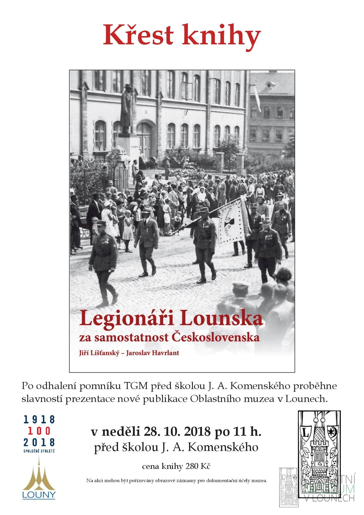 KŘEST KNIHY Legionáři Lounska za samostatnost Československa