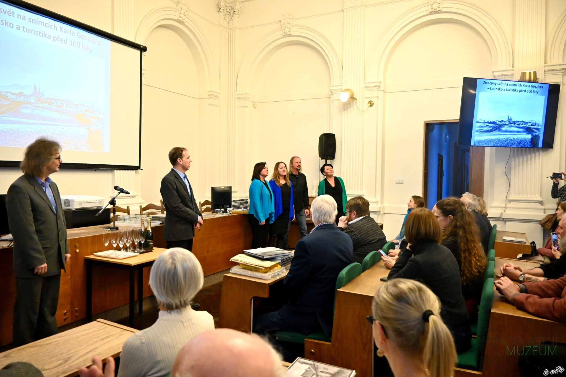 V zasedací síni lounské radnice proběhl ve středu 29. ledna křest knihy Ztracený svět na snímcích Karla Goszlera - Lounsko a turistika před 100 lety a křest DVD Barevný svět na snímcích Karla Goszlera. Knihu představil její autor Martin Vostřel na prezentaci, kde ukázal co čtenáře v knize čeká. Přítomen byl také pravnuk Karla Goszlera - Svatopluk Goszler, režisér filmu Josef Císařovský a kameraman Michal Němec. Účast byla opravdu velká, několik knih se prodalo a lidé si ji nechali od autora knihy podepsat.