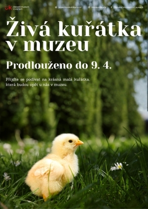 Zveme všechny malé i velké návštěvníky, aby se přišli potěšit roztomilými velikonočními kuřátky. V našem muzeu na vás opět čeká živá velikonoční výzdoba, která potěší hlavně děti – ale věříme, že vykouzlí úsměv na tváři úplně každému.
