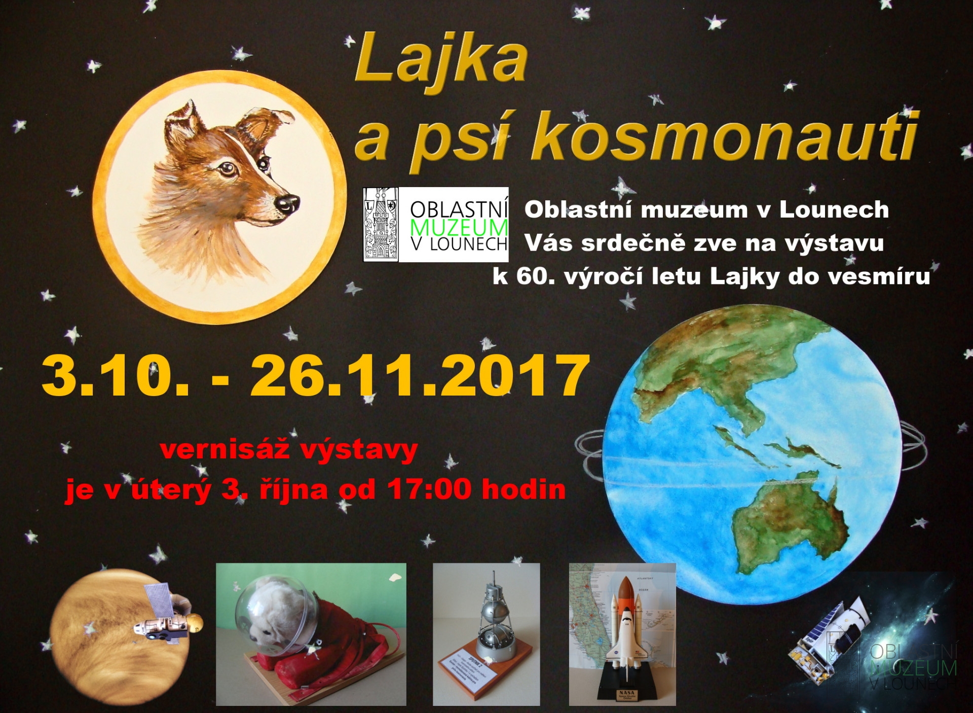 Na této výstavě k 60. výročí letu Lajky do vesmíru si mohou návštěvníci prohlédnout modely, obrázky, literaturu, poštovní známky atd. z oblasti letů psích kosmonautů do vesmíru. Doplňkovou část výstavy tvoří modely různých raket, sond a přístrojů létajících ve vesmíru, dalekohledů, teleskopů a také kresby dětí.