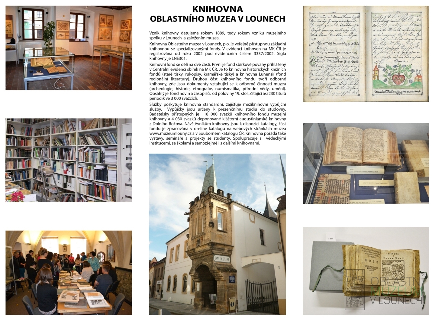 Knihovna Oblastního muzea v Lounech spolupracuje se Souborným katalogem ČR a digitální knihovnou Manuscriptorium.