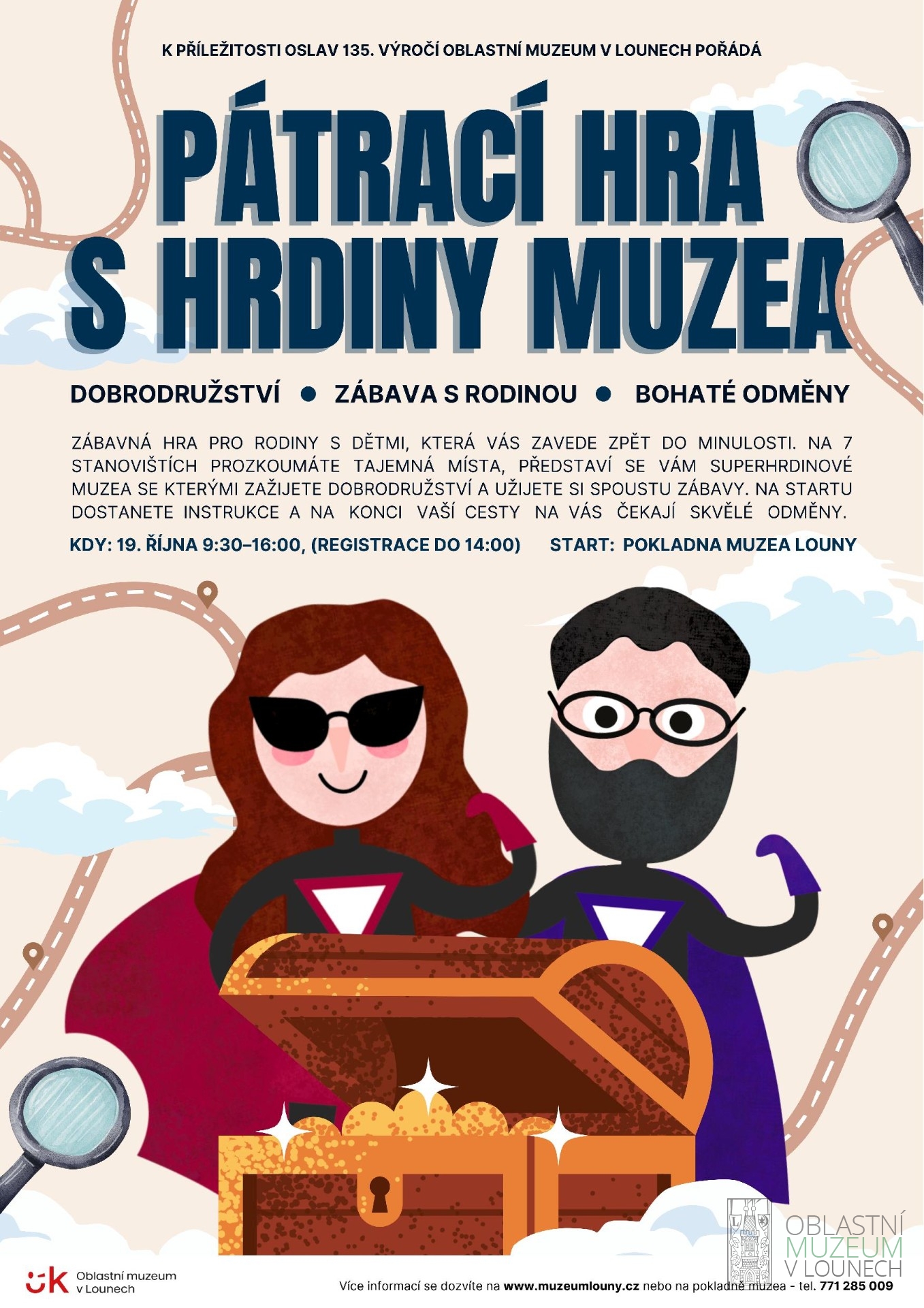 Zábavná hra pro rodiny s dětmi, která vás zavede zpět do minulosti. Díky 7 stanovištím v Lounech prozkoumáte tajemná místa spjatá s osobnostmi muzea, které se vám představí jako superhrdinové. Zažijete dobrodružství s různými úkoly a na konci vaší cesty na vás čekají odměny.