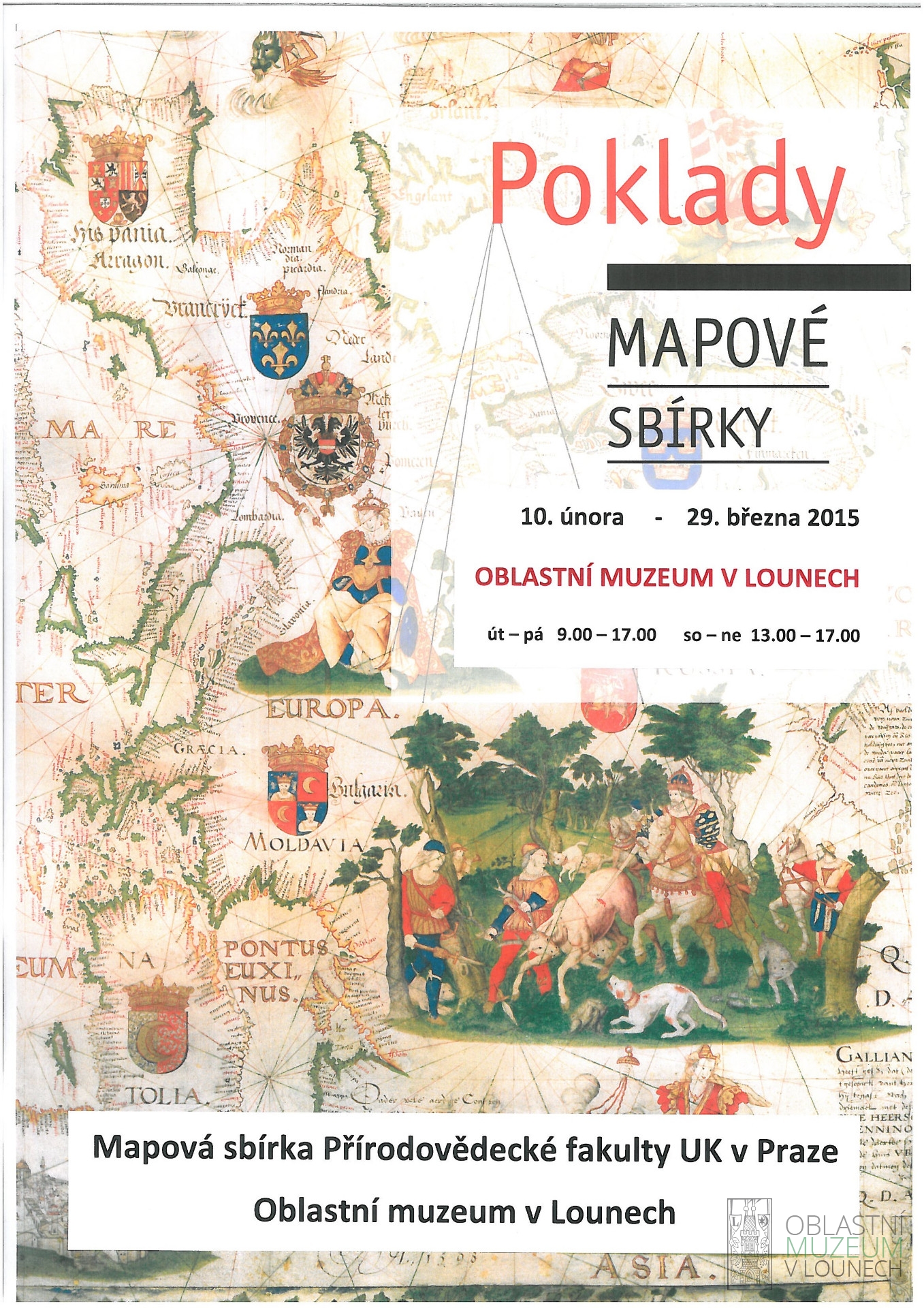 Mapová sbírka Přírodovědecké fakulty UK vytvořila za podpory Ministerstva kultury ČR výstavu Poklady mapové sbírky. Expozice představuje unikátní mapy, atlasy a glóby, které nejsou běžně přístupné veřejnosti. Celý soubor kartografických exponátů byl takto vůbec poprvé prezentován veřejnosti v roce 2014 na Univerzitě Karlově. Nyní se představí část souboru i v Oblastním muzeu v Lounech. Výstava bude doplněna také ukázkou jednotlivých tisků ze sbírky muzejní knihovny.
