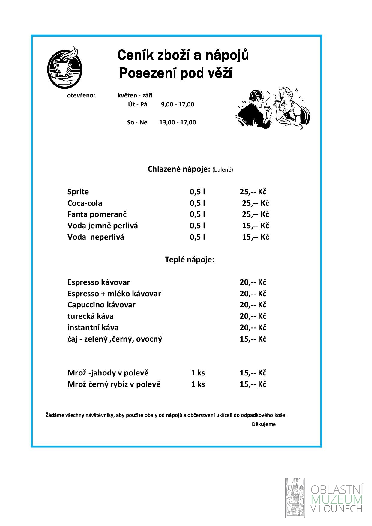 příjemné posezení pod slunečníky, malé občerstvení, místní tisk, či