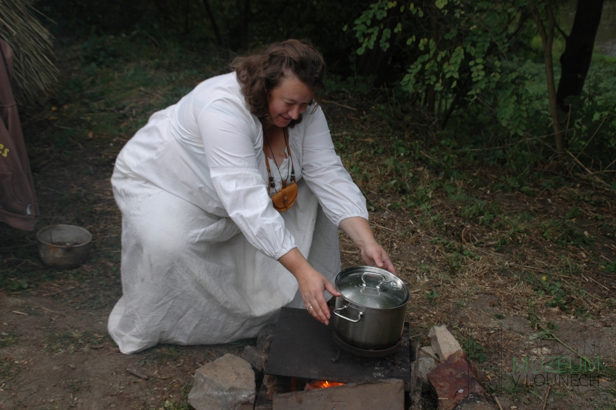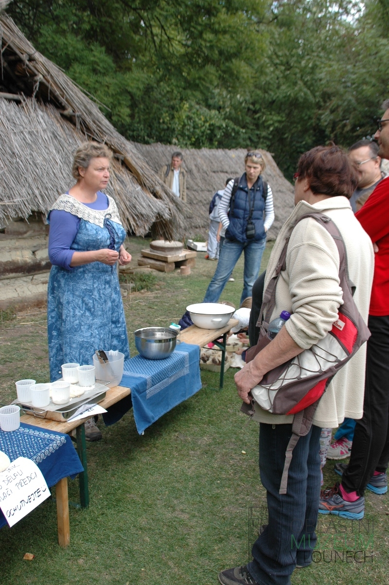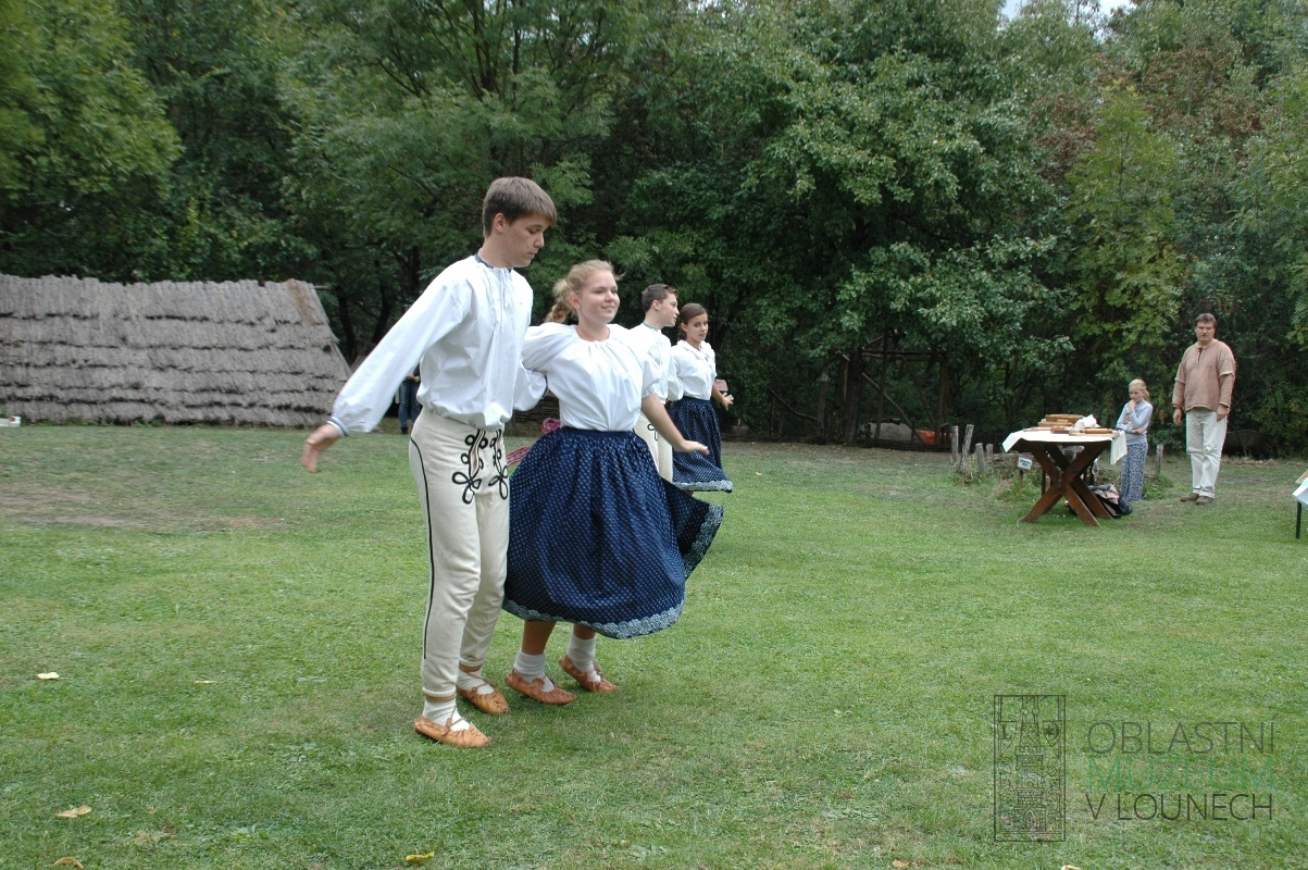Neděle 27. září patřila v Archeologickém skanzenu Březno Staroslovanskému posvícení. Rekonstrukce pravěkých a časně historických budov obydleli drobní zemědělci z našeho regionu. Každý z nich předváděl výrobu tradičních potravin. V dnešní době naplněné obchodnickým názvoslovím je velmi těžké představit si, co se skrývá pod pojmy jako zemědělec či tradiční potravina. Z toho důvodu je nutné vysvětlit, že pro akci v Březně byli vybráni lidé, kteří skutečně pracují na polích, chovají hospodářská zvířata nebo alespoň živočišné či rostlinné produkty vlastnoručně zpracovávají. Za tradiční potravinu v rámci březenského posvícení byl považován ten produkt, který prokazatelně vyráběli lidé na našem území již v pravěku nebo raném středověku. Každý návštěvník mohl vidět či vyzkoušet výrobu sýru, pečení placek a perníku, vaření povidel, medoviny a kaší. Nechybělo ani ruční lisování jablečného moštu. Velikému zájmu se těšila jednoduchá zemní udírna, jejíž konstrukce se od doby bronzové až do současnosti vůbec nezměnila.Vášnivé chovatele mohla potěšit přítomnost koz a pasteveckého psa. Pro ty, kteří více tíhnou k umělecké práci, byla přichystána keramická dílna Kateřiny Pacltové. Na závěr dne vystoupili pod vedením Ivany Fábryové žáci tanečního oboru Základní umělecké školy Žatec. Vždyť také tanec a zpěv patřily ke každé slavnosti již před tisíci lety.