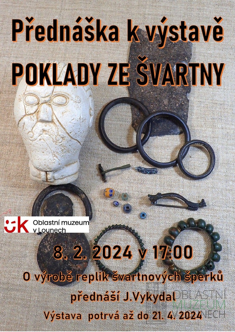 Přednáška k výstavě Poklady ze švartny. O kounovské sloji, švartně a výrobě replik keltských šperků přednáší J. Vykydal a Oldřich Janeček.