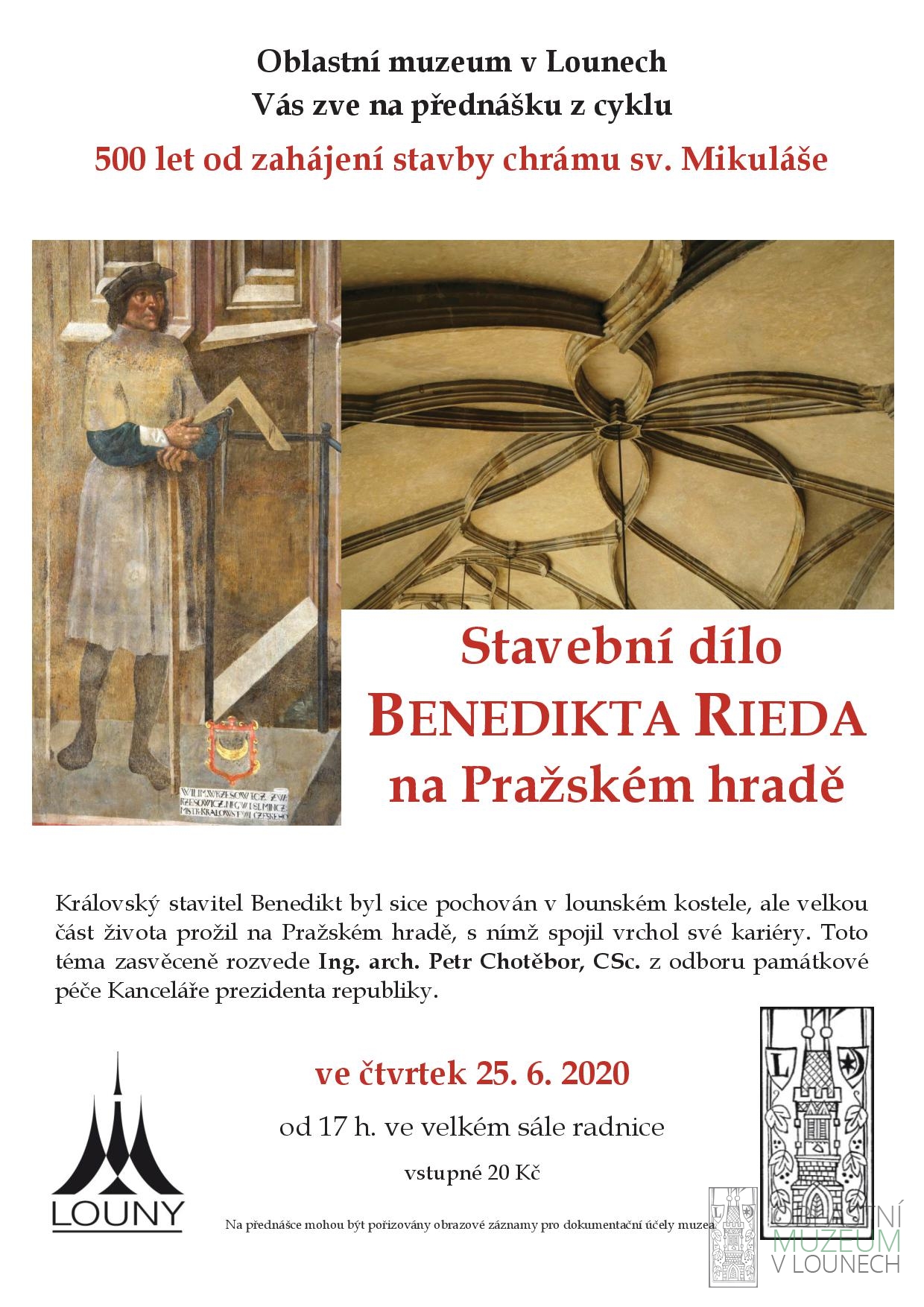 Královský stavitel Benedikt byl sice pochován v lounském kostele, ale velkou část života prožil na Pražském hradě, s nímž spojil vrchol své kariéry. Toto téma zasvěceně rozvede Ing. arch. Petr Chotěbor, CSc. z odboru památkové péče Kanceláře prezidenta republiky.