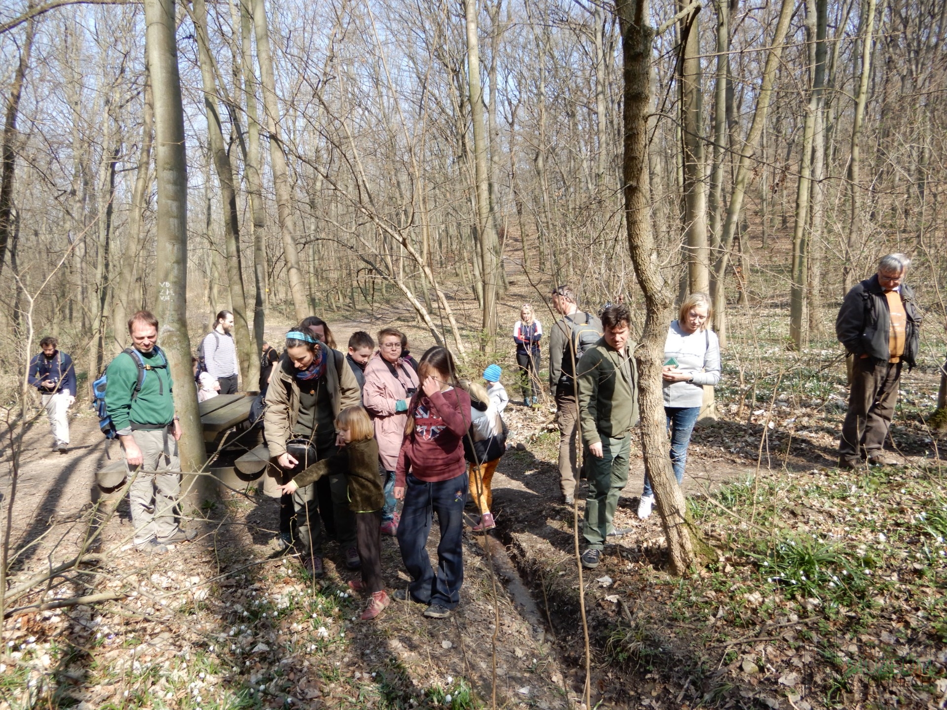 Na březnovou muzejní sobotu s přírodovědci konečně vyšlo slušné počasí, což se hned výrazně podepsalo na návštěvnosti a ráno na hráz Lenešického rybníka dorazilo okolo 40 návštěvníků. Pozorování nejrůznějších druhů kachen (čírka modrá, polák chocholačka aj.), hus (berneška velká aj.), potápek (potápka černokrká, zásnubní „tanec“ potápek roháčů) ale i bahňáků (jespák bojovný, kulík říční aj.) z hrází Lenešické soustavy rybníků nám zabralo 2 hodiny. Pak jsme se přesunuli až ke Křesínu u Libochovic, kde nás v tamním listnatém lese za obcí Levousy čekalo jarní společenstvo kvetoucích rostlin v podrostu ještě neolistěného listnatého lesa v čele se záplavami bledulí. Hojně kvetly ale i pozdnější druhy jako dymnivky duté, sasanky pryskyřníkovité, křivatce žluté, jaterníky podléšky a další. V lese za Levousy jsme také objevili nepatrné pozůstatky hradu Šebín, který zde stával po krátké období od 13. st.. Poslední zastávkou byl vrch Rohatec mezi Křesínem a Dubany. Kopec, který je zajímavě zvrásněný dávnou těžbou čediče, nabízí zajímavou geologii i živou přírodu a v neposlední řadě také krásné výhledy na České středohoří na severu. Kromě povídání o geologii tohoto místa se nám tu podařilo odchytit i cvrčka. Na mladé návštěvníky jako tradičně čekala odměna za přírodovědné vědomosti nabité během exkurze. Na závěr se část účastníků rozvalila na trávnících na svazích kopce a užívala jarní slunce (teploty šplhaly ke 20 st. C°) a daleké výhledy.