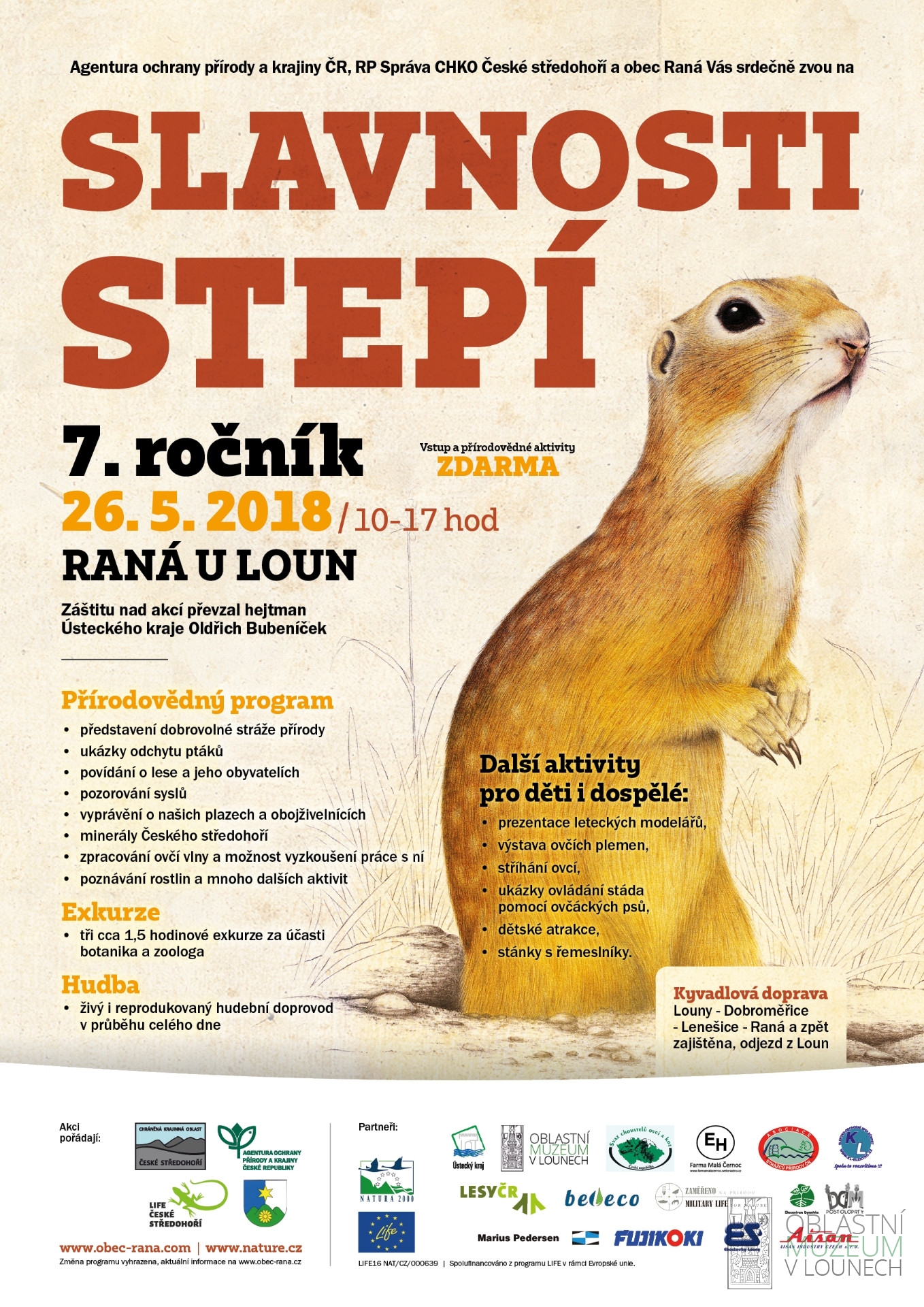 Správa CHKO České středohoří a Oblastní muzeum v Lounech Vás zvou již na 7. ročník Slavností stepí, které se konají v obci Raná a blízkém okolí v sobotu 26. 5. 2018 od 10 do 17 h.
