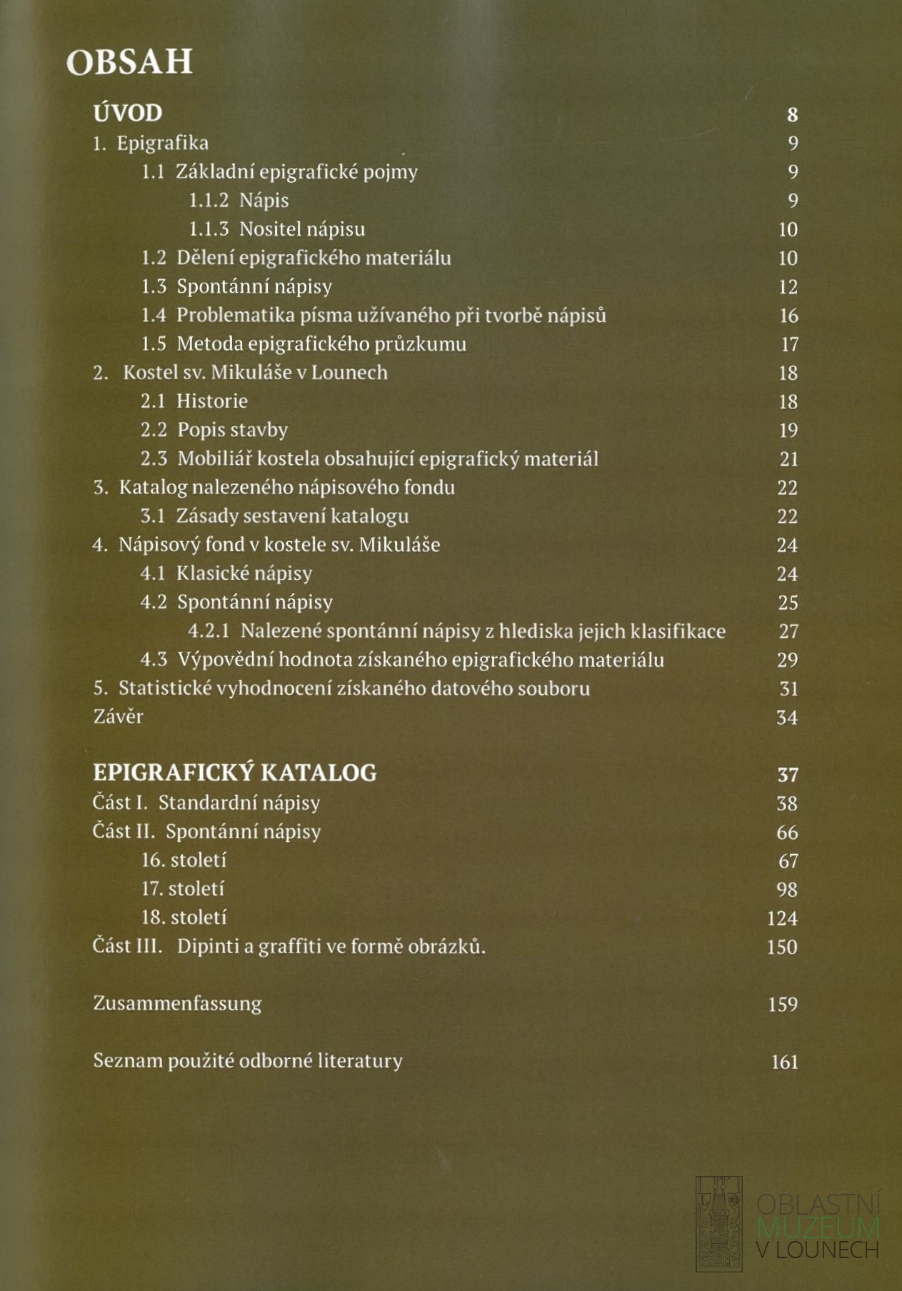 MÁVR, Jan. Tři století epigrafiky v kostele sv. Mikuláše v Lounech (16.-18. století). 1. vydání. Louny Ústí nad Labem: Oblastní muzeum v Lounech Filozofická fakulta Univerzity Jana Evangelisty Purkyně v Ústí nad Labem, 2023 2023. 158, [6] stran. ISBN 978-80-905891-9-3.