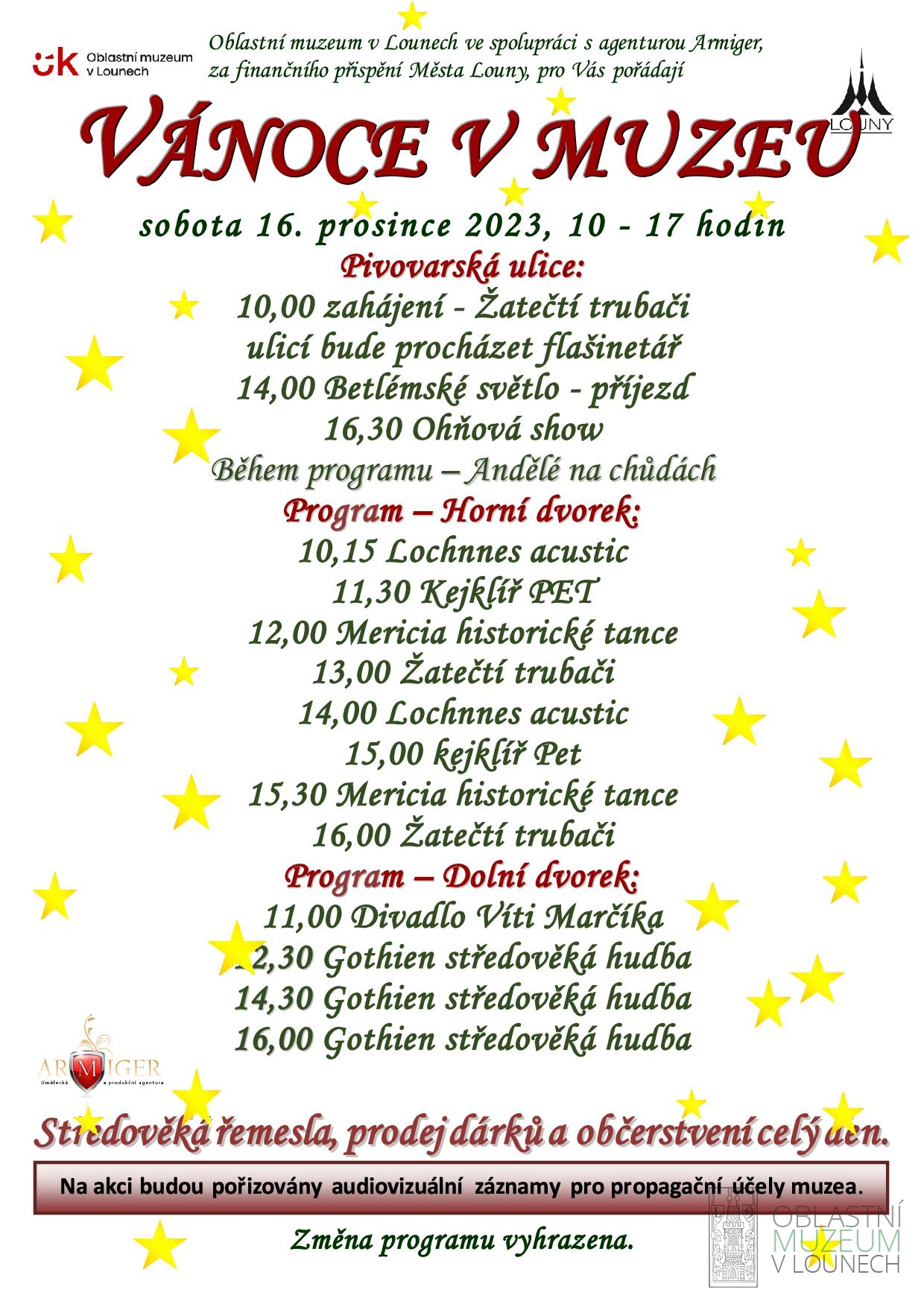 pro Vás pořádá vánoční trhy. Program probíhá na dolním i horním dvorku muzea a v ulici