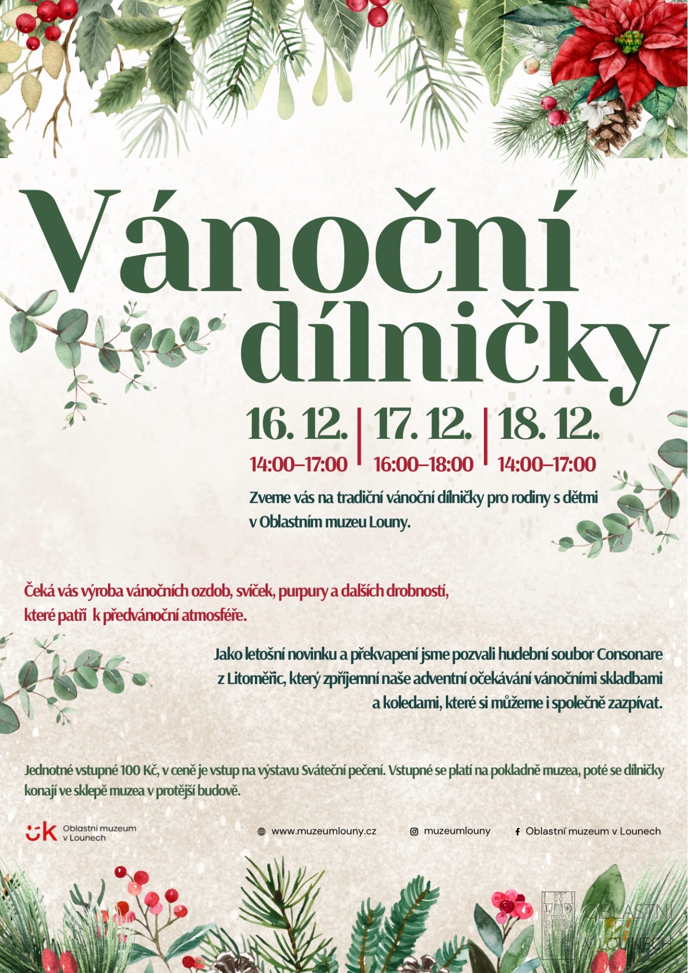 Jako letošní novinku a překvapení jsme pozvali hudební soubor Consonare z Litoměřic, který zpříjemní naše adventní očekávání vánočními skladbami a koledami, které si můžeme i společně zazpívat.