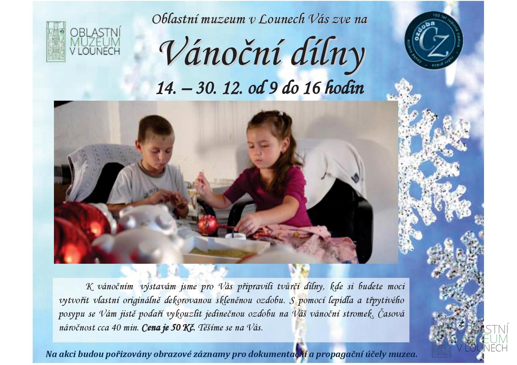 K vánočním výstavám jsme pro Vás připravili tvůrčí dílny, kde si budete moci vytvořit vlastní originálně dekorovanou skleněnou ozdobu. S pomocí lepidla a třpytivého posypu se Vám jistě podaří vykouzlit jedinečnou ozdobu na Váš vánoční stromek. Časová náročnost cca 40 min.