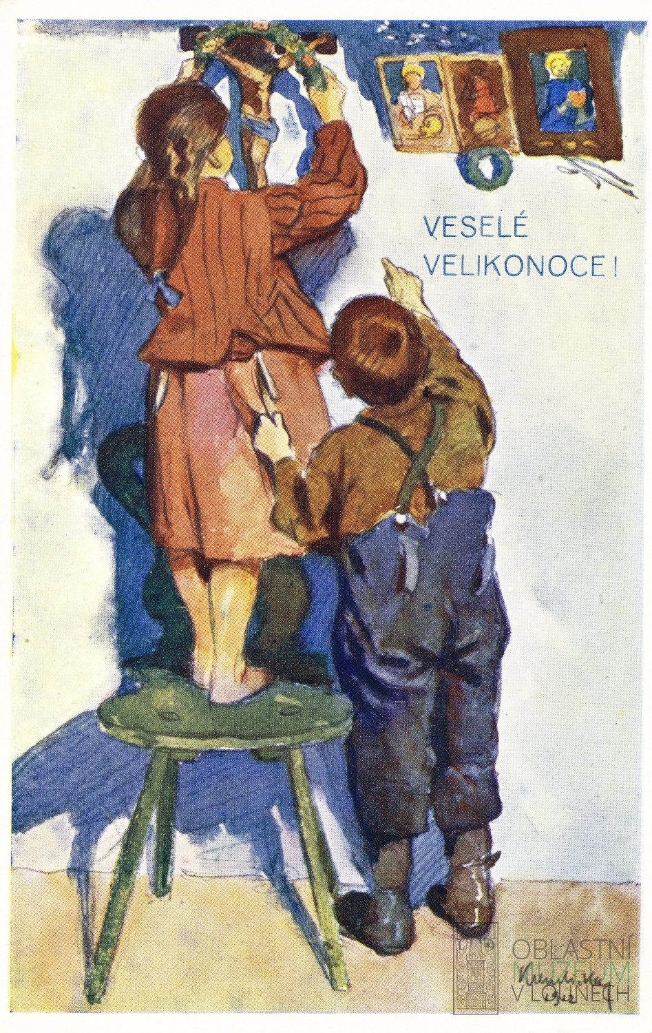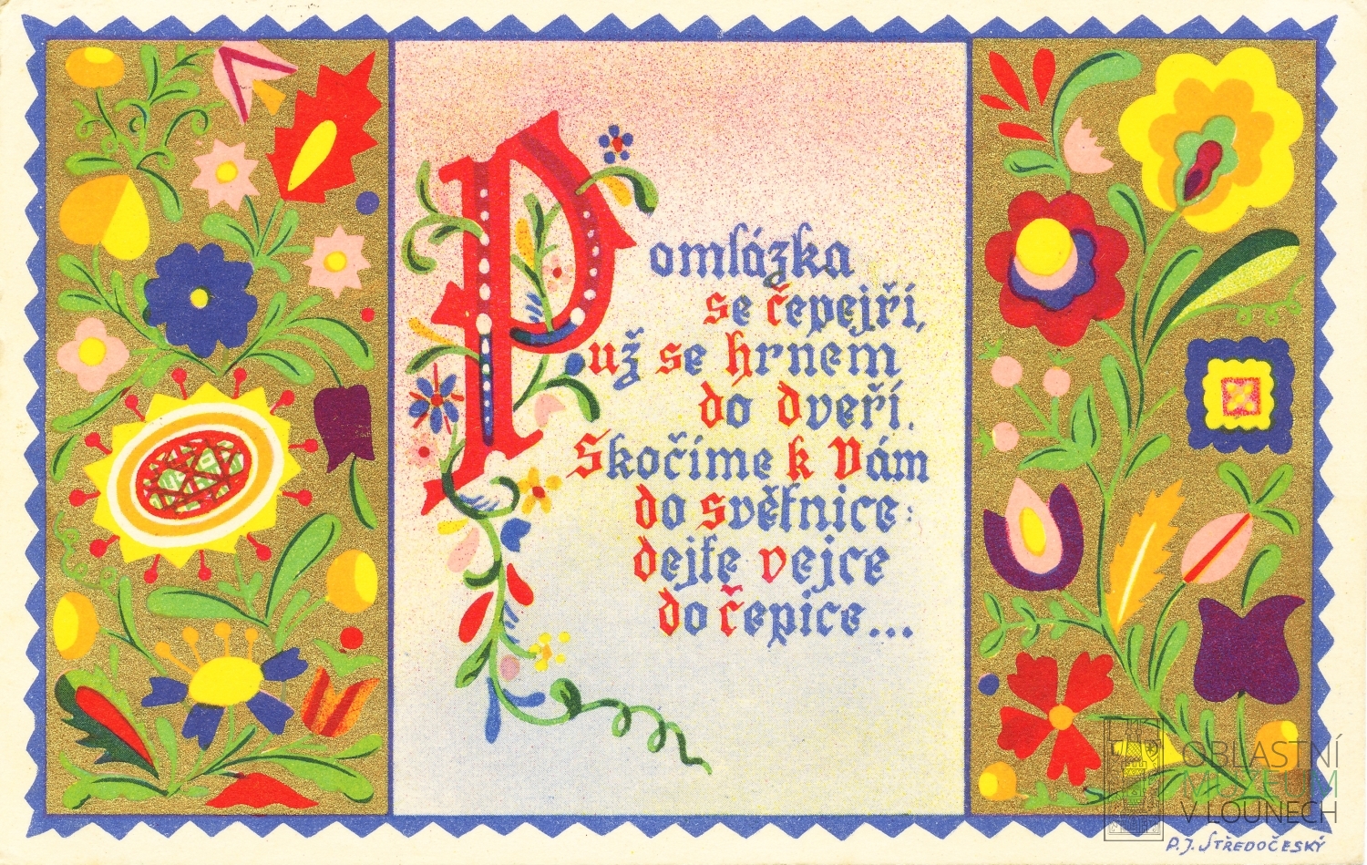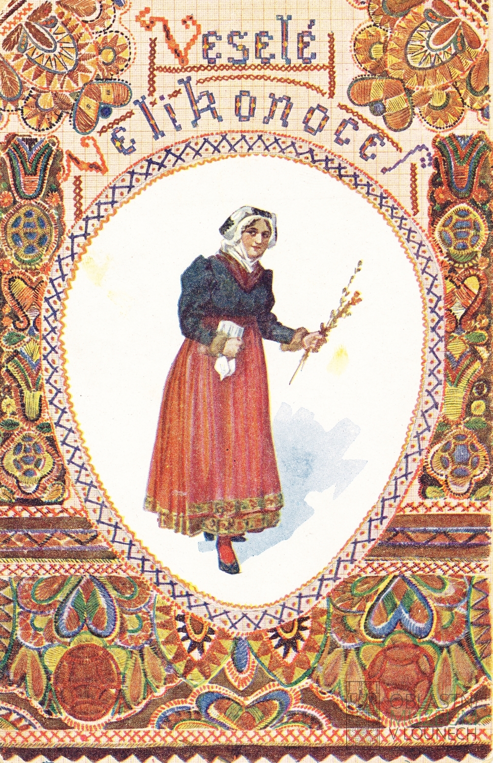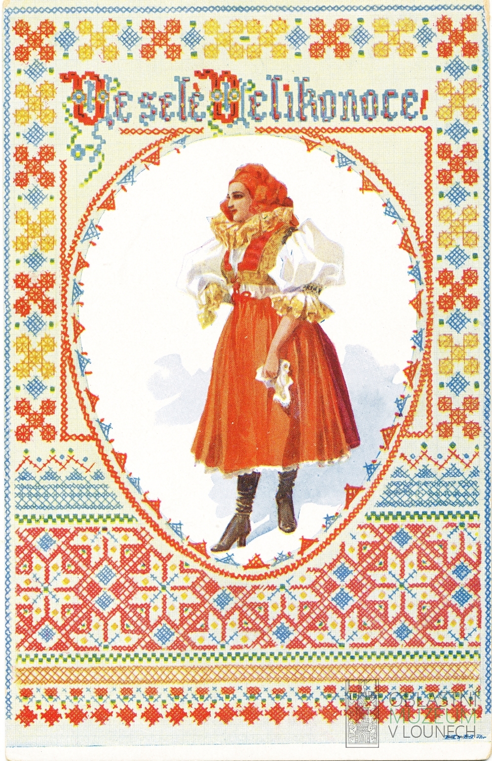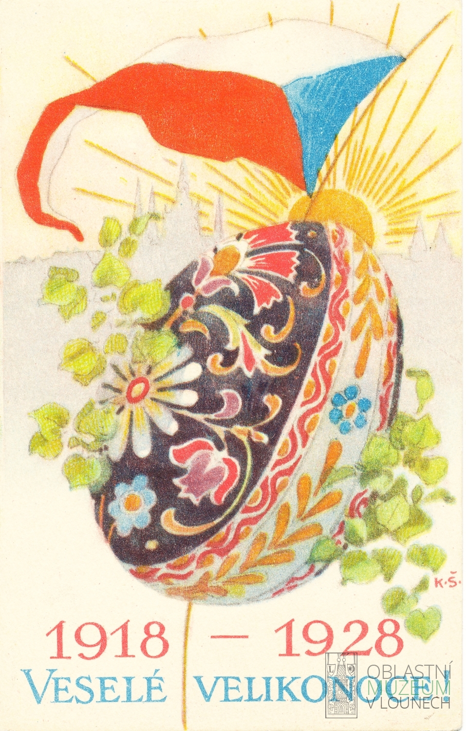 I v období první republiky byla hlavním tématem velikonočních pohlednic vajíčka, byť někdy jen coby rám kolem žen v lidových krojích. Na pohlednicích zarezonovalo i téma samostatného československého státu a začala se na nich objevovat i reklama. Kromě anonymních autorů je navrhovali takoví umělci, jako byl třeba Rudolf Kremlička (1886-1932).