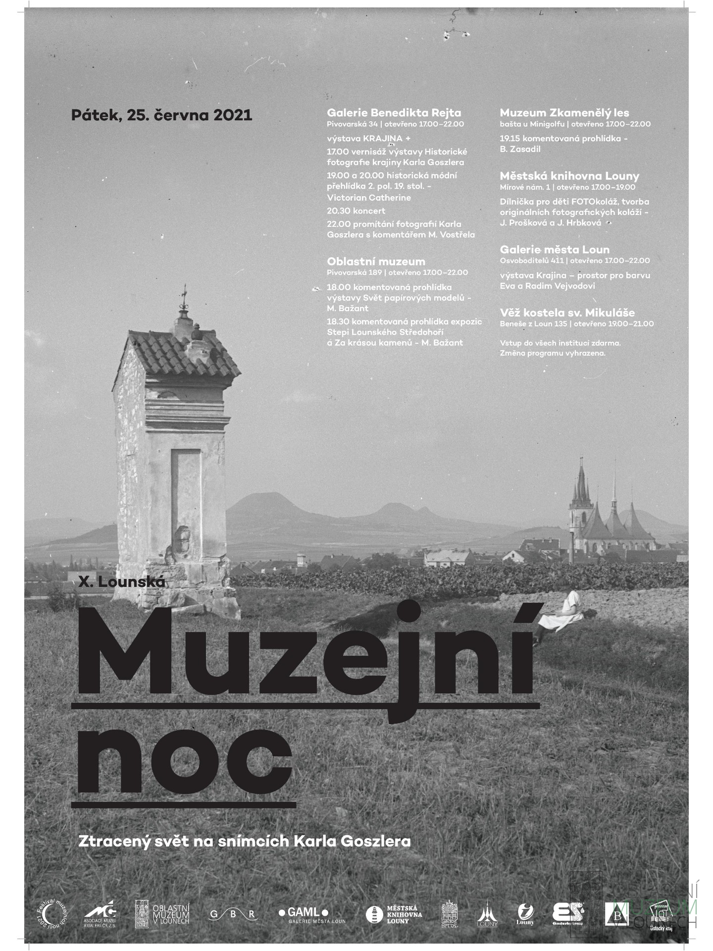 Hlavní pořadatelé – Oblastní muzeum v Lounech a Galerie Benedikta Rejta ve spolupráci s Městským informačním centrem Louny | místo – Pivovarská ulice, Louny | www.muzeumlouny.cz, www.gbr.cz , www.louny.eu | program – Martin Vostřel, Jaroslav Havrlant, Kateřina Melenová | kurátorky výstavy Historické fotografie krajiny Karla Goszlera – Barbora Kovářová, Michaela Vávrová | účinkující – Vít Malota, přehlídka dobových oděvů – Victorian Catherine | přednášející Josef Jiří Már, Miroslav Bažant, Oldřich Janeček, Bořek Zasadil, Martin Vostřel | historické fotografie – sbírka Svatopluka Goszlera a Obl. muzea v Lounech | skenování a úprava historických fotografií Bořek Zasadil | tisk fotografií Martin Wágner | grafika Lukáš Hájek | produkce GBR Michaela Drápalová | tisk propagace DIGON s.r.o. | akce vznikla za podpory města Louny a Ústeckého kraje (zřizovatele obou pořadatelských institucí) | sponzor tisku historických fotografií – EKOSTAVBY Louny s.r.o. – www.ekostavbylouny.cz | další doprovodné programy – Městská knihovna Louny a lektorky Johana Prošková, Jana Hrbková, Galerie města Loun, Muzeum Zkamenělý les zpřístupňuje obl. muzeum ve spolupráci s firmou Barokní špitál s.r.o.