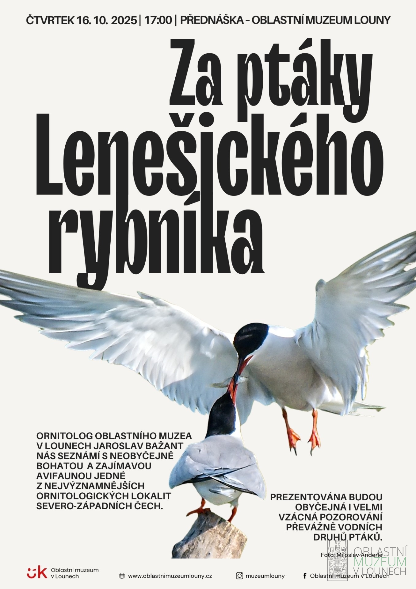 Seznámení s neobyčejně bohatou a zajímavou avifaunou jedné z nejvýznamnějších ornitologických lokalit severozápadních Čech. Prezentována budou obyčejná i velmi vzácná pozorování převážně vodních druhů ptáků.